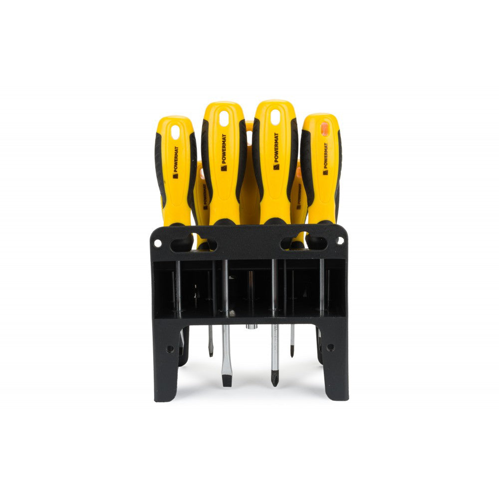 Folosirea de materiale de inalta calitate, cum ar fi aliajul de vanadiu crom in producerea de surubelnite, isi prelungeste durata de functionare si confera o durabilitate mai mare. Cromul garanteaza rezistenta otelului la coroziune, oxidare, abraziune si durabilitate ridicata la temperaturi ridicate. Adaugarea de vanadiu inhiba cresterea boabelor in timpul tratamentului termic, crescand in acelasi timp ductilitatea atat a formelor intarite cat si a celor temperaturi. Setul de surubelnite POWEMAT PM-WK-21Z va functiona in fiecare garaj sau atelier. Standul inclus face usor depozitarea surubelnitelor. Pe partea din spate a suportului, exista 2 gauri de montare care permit atarnarea intregului set pe perete.