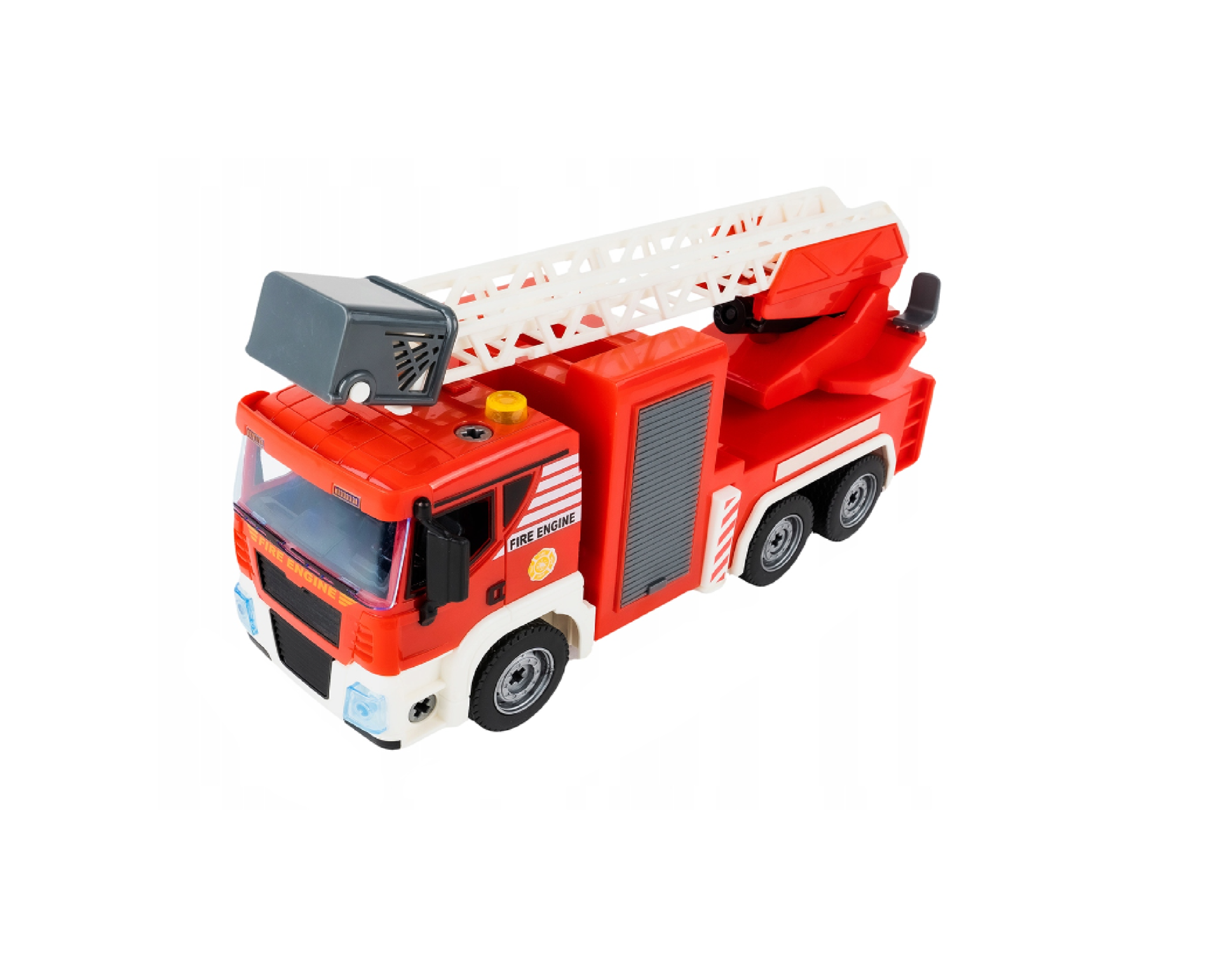 Dupa asamblarea vehiculului nostru motorizat, copilul se poate juca un adevarat pompier! Masina scoate sunete, se lumineaza, iar bratul sau cu cos este pliabil si rotativ! In plus, sub el vom gasi o sikawka (manichin) pliabila. Cabina este mobila.