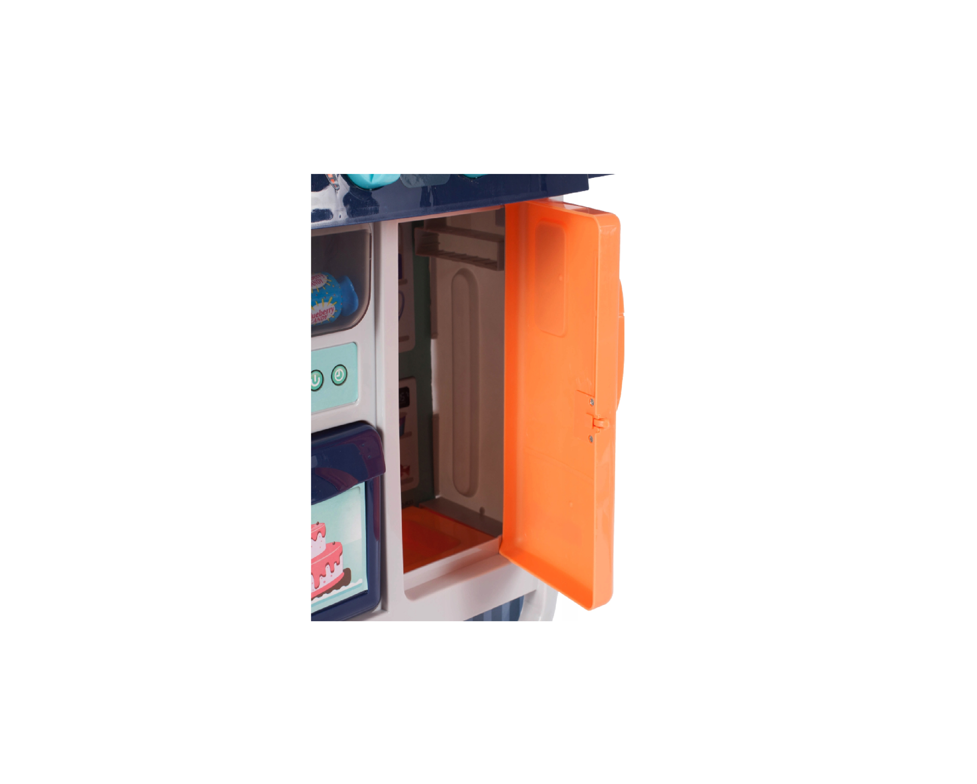 Bucataria dispune de un dulap cu deschidere, frigider si cuptor , in care puteti depozita produsele incluse in set.