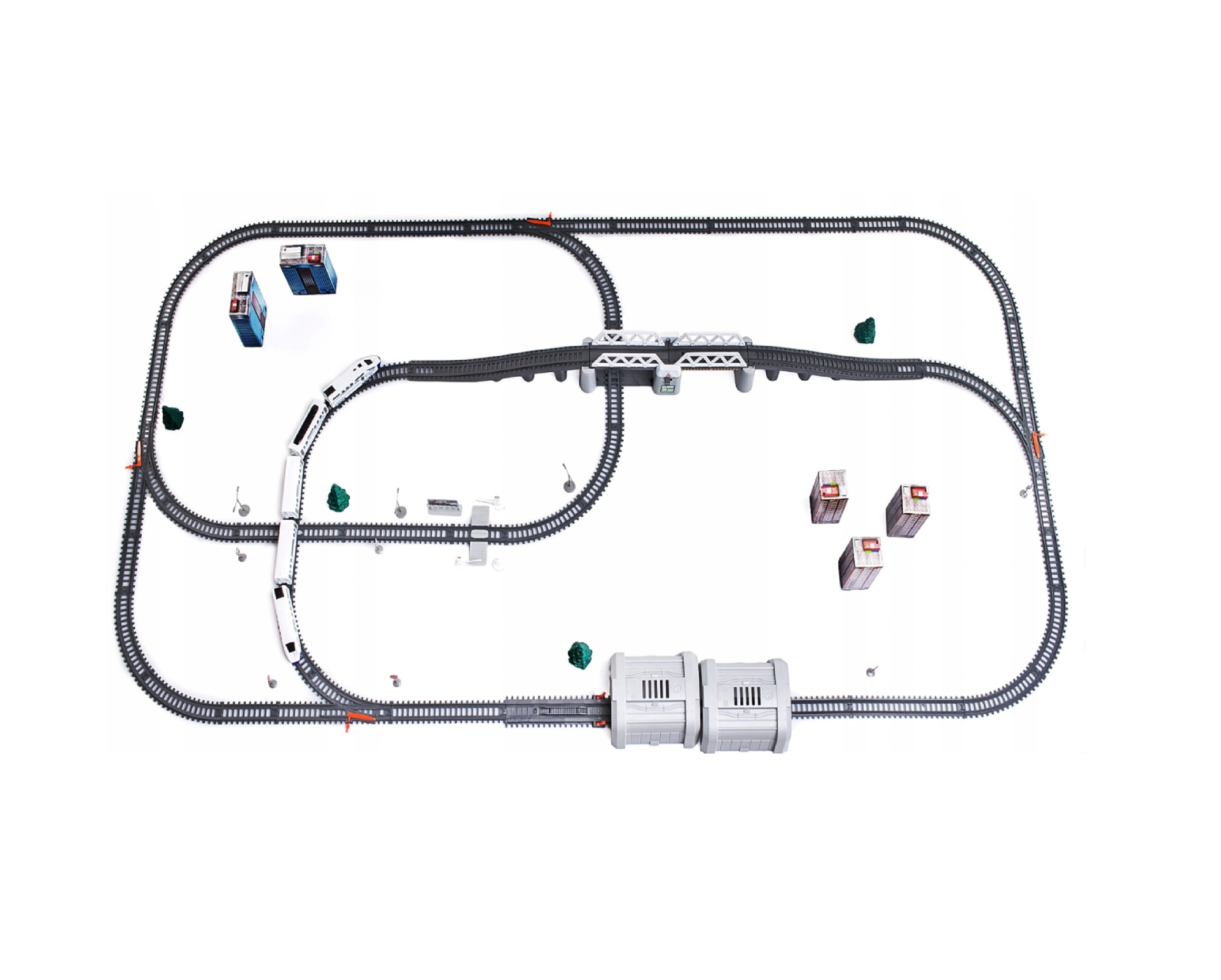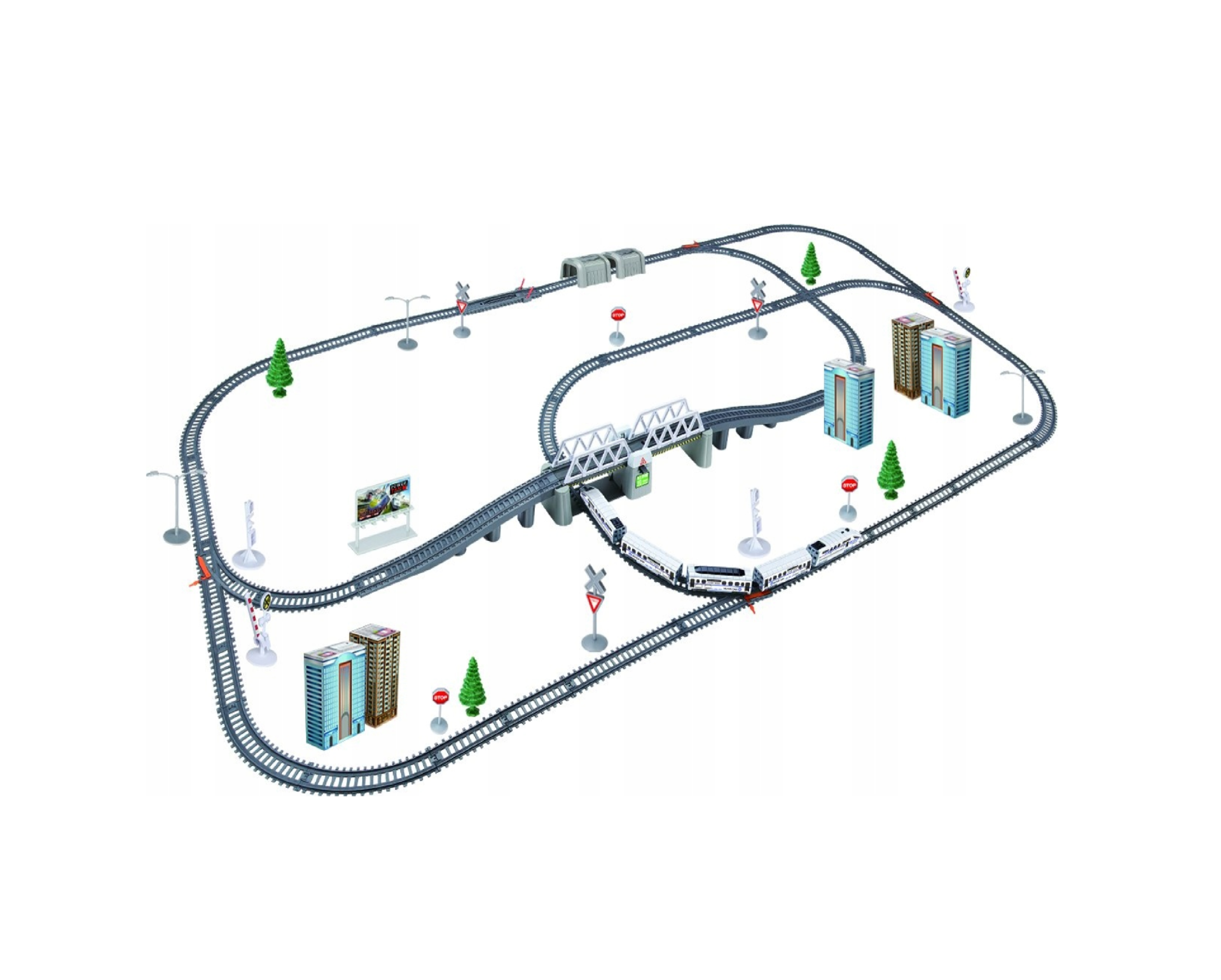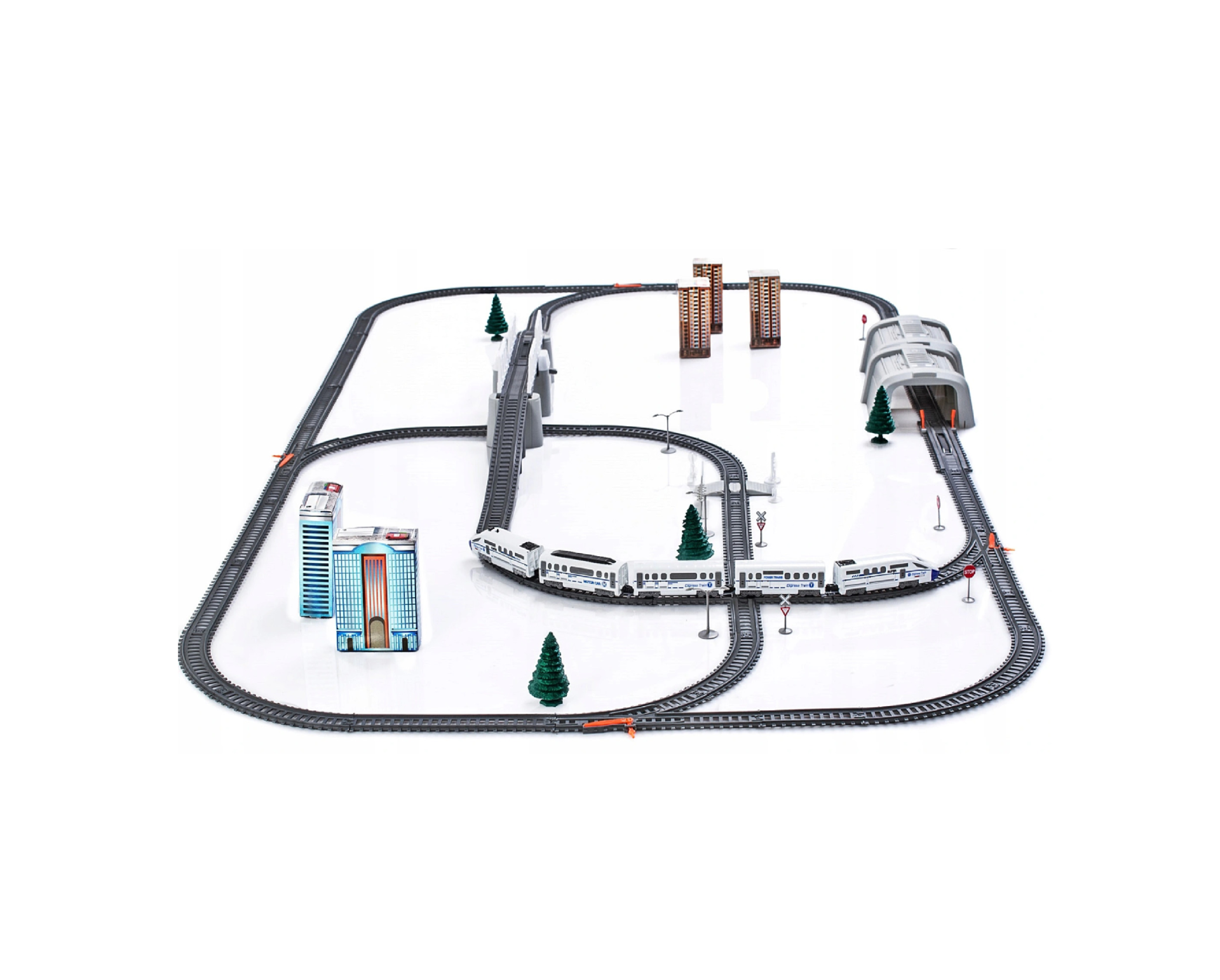 Ofera-i copilului tau un cadou neobisnuit si ofera-i un set incredibil de mare. O pista lunga si un set bogat de accesorii! Posibilitatea jocului creativ este asigurata de multe elemente ale cozii: pista de auto-asamblare, locomotiva + vagoane de pasageri, pod, tuneluri, indicatoare si copaci.