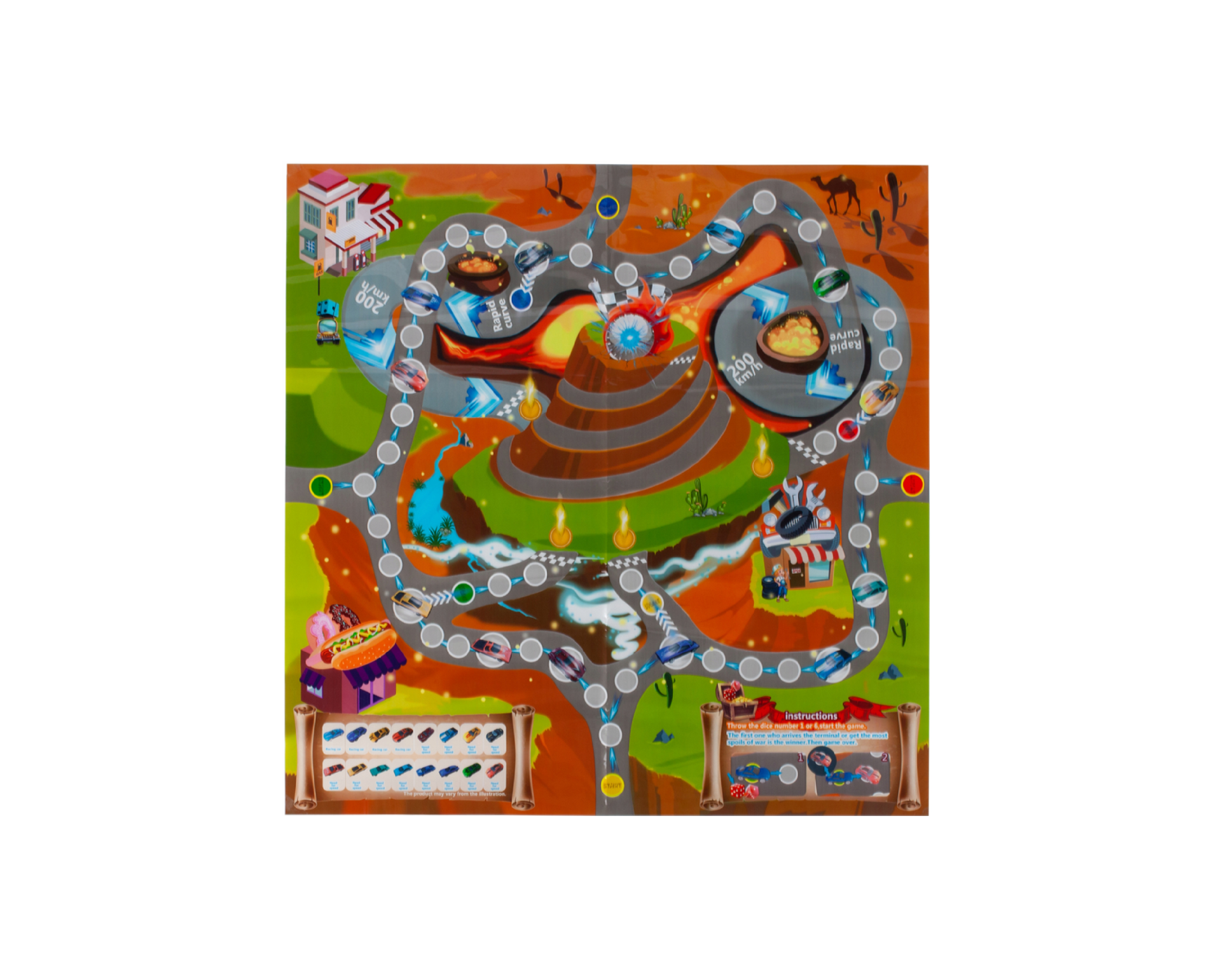 Rotiti zarurile si mergeti inainte cu numarul indicat de jumatati. Masina care ajunge prima la linia de sosire castiga!
