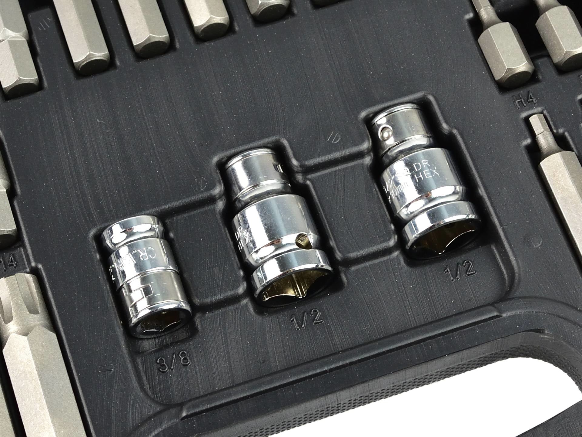 - Adaptor priza de 1/2" (2 buc.) si priza de 3/8" pentru biti de 10 mm