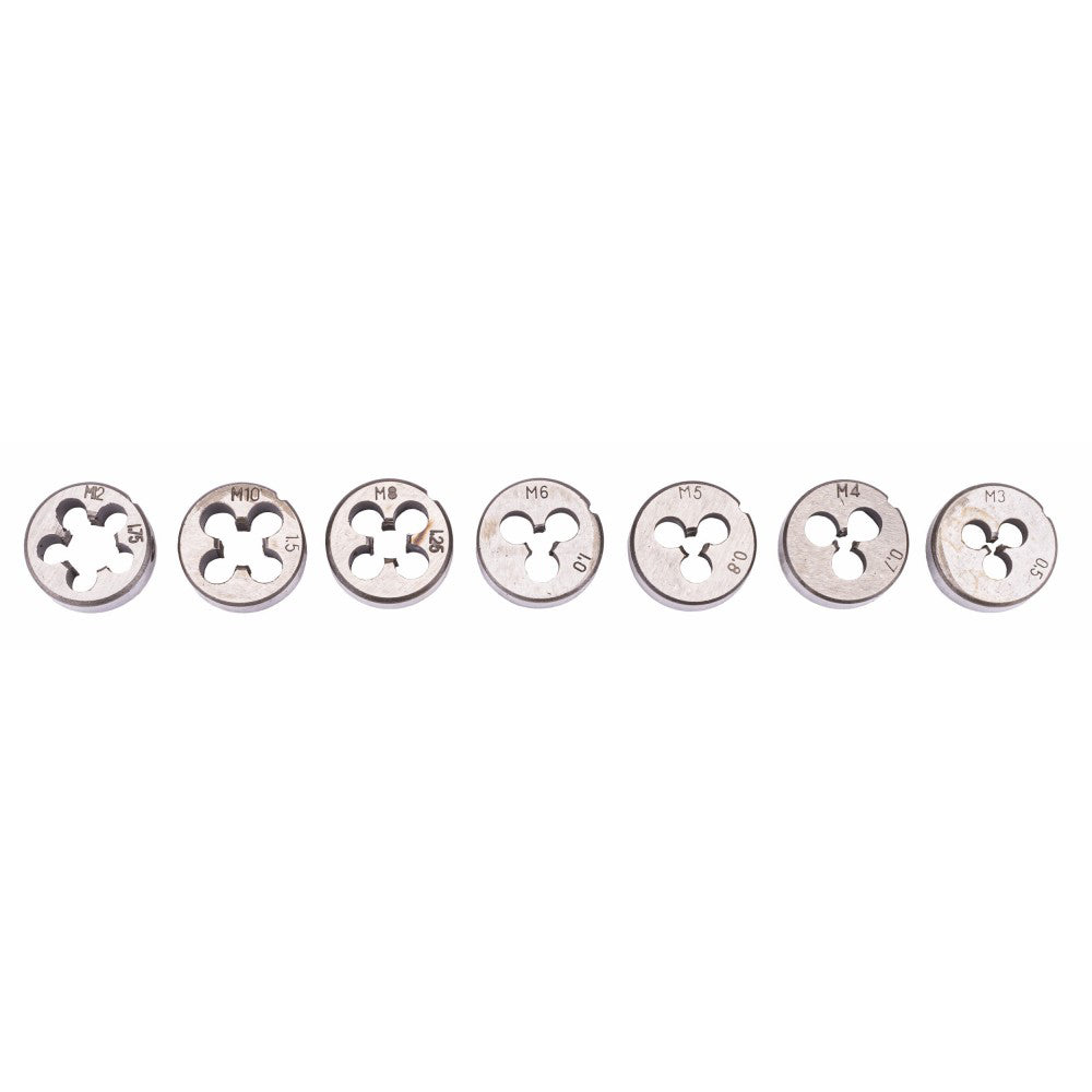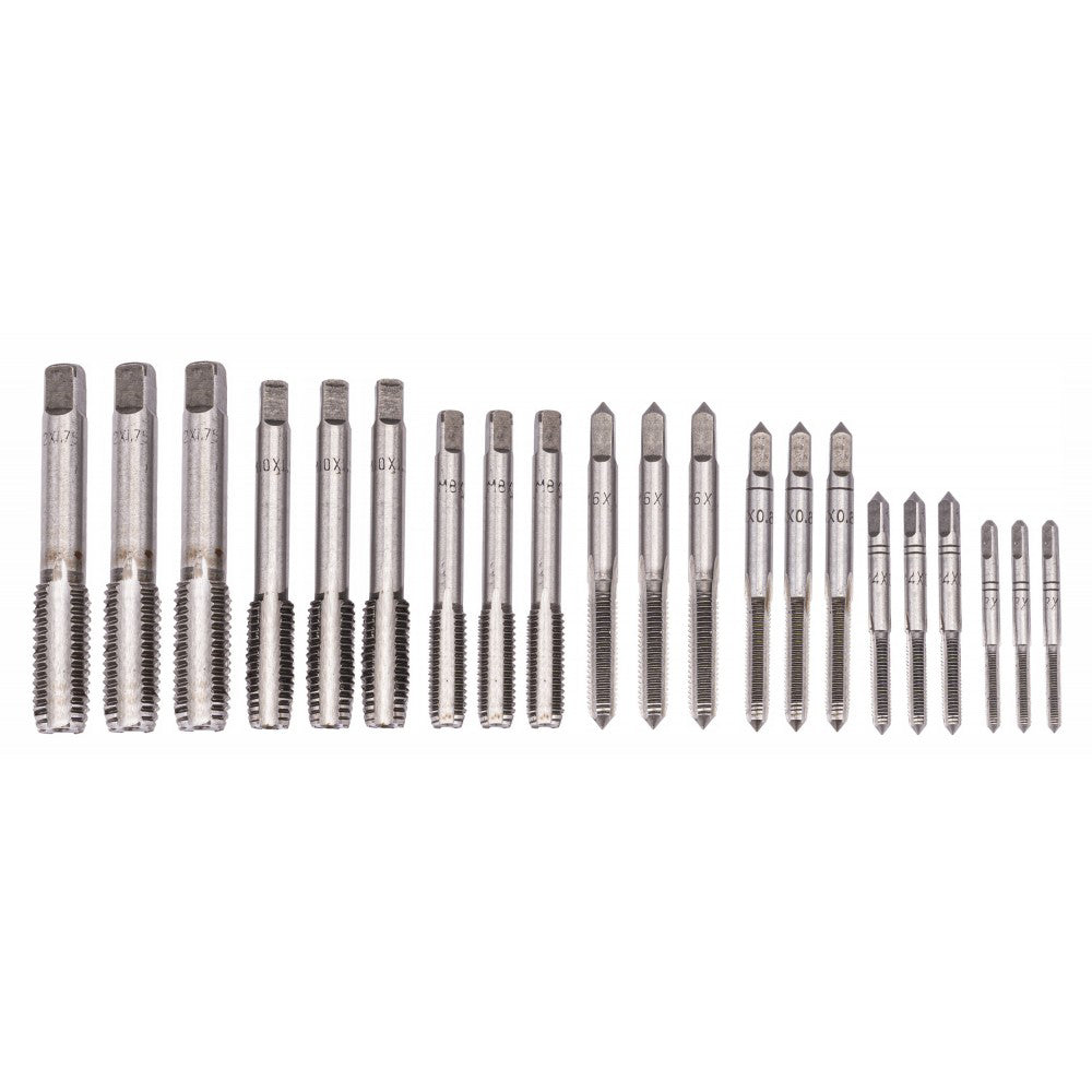 Set modern de tarozi si filiere M3-M12. Setul include 32 de scule diferite fabricate din otel de înalta calitate. Întregul a fost plasat într-o cutie metalica pentru transport si depozitare.