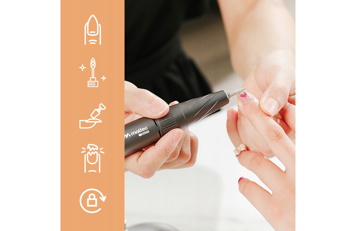 Masina de frezat Maltec Beauty este perfecta atat pentru saloanele profesionale de infrumusetare, cat si pentru uz casnic. Datorita acesteia, timpul necesar pentru a efectua o manichiura sau pedichiura poate fi redus cu pana la jumatate! Utilizarea acestei masini de frezat minimizeaza necesitatea de a folosi acetona si pilitura excesiva, care protejeaza placa unghiei de slabire.