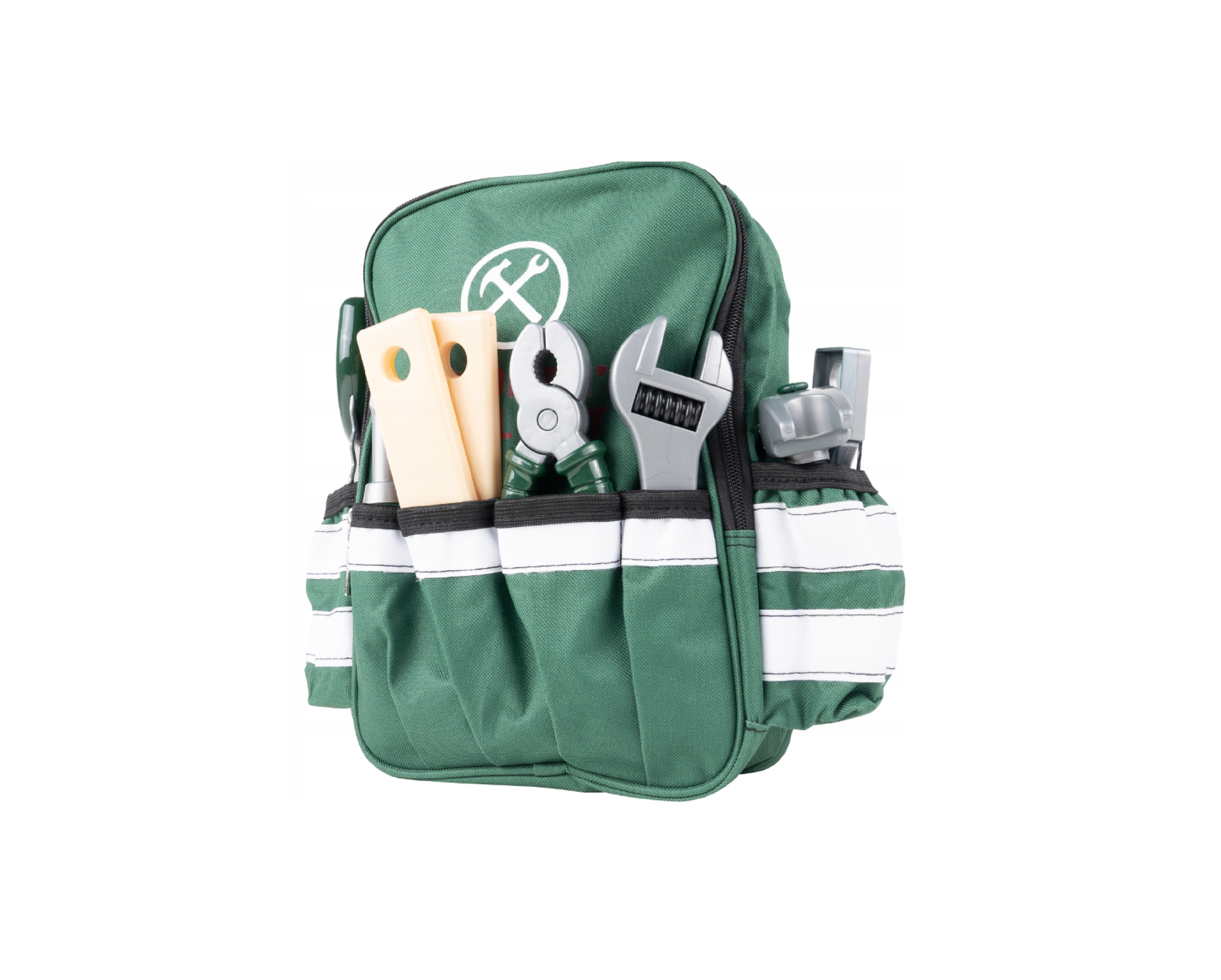 Toate elementele pot fi ascunse intr-un rucsac incapator, cu numeroase buzunare, care iti va permite sa iei cu tine instrumentele necesare! Setul reproduce perfect echipamentul real si va permite sa jucati rolul unui mecanic! De asemenea, ajuta sa va obisnuiti cu utilizarea instrumentelor de baza utile in viata de zi cu zi.
