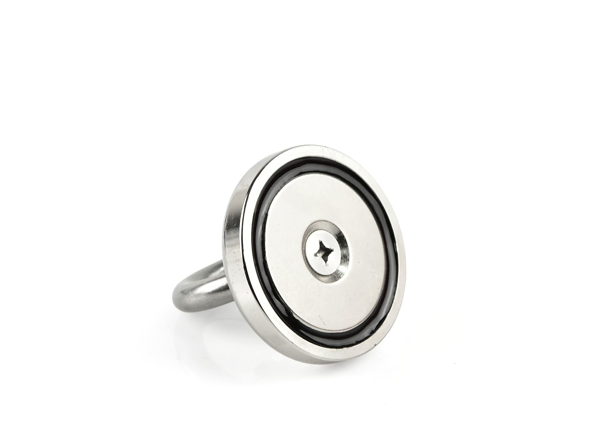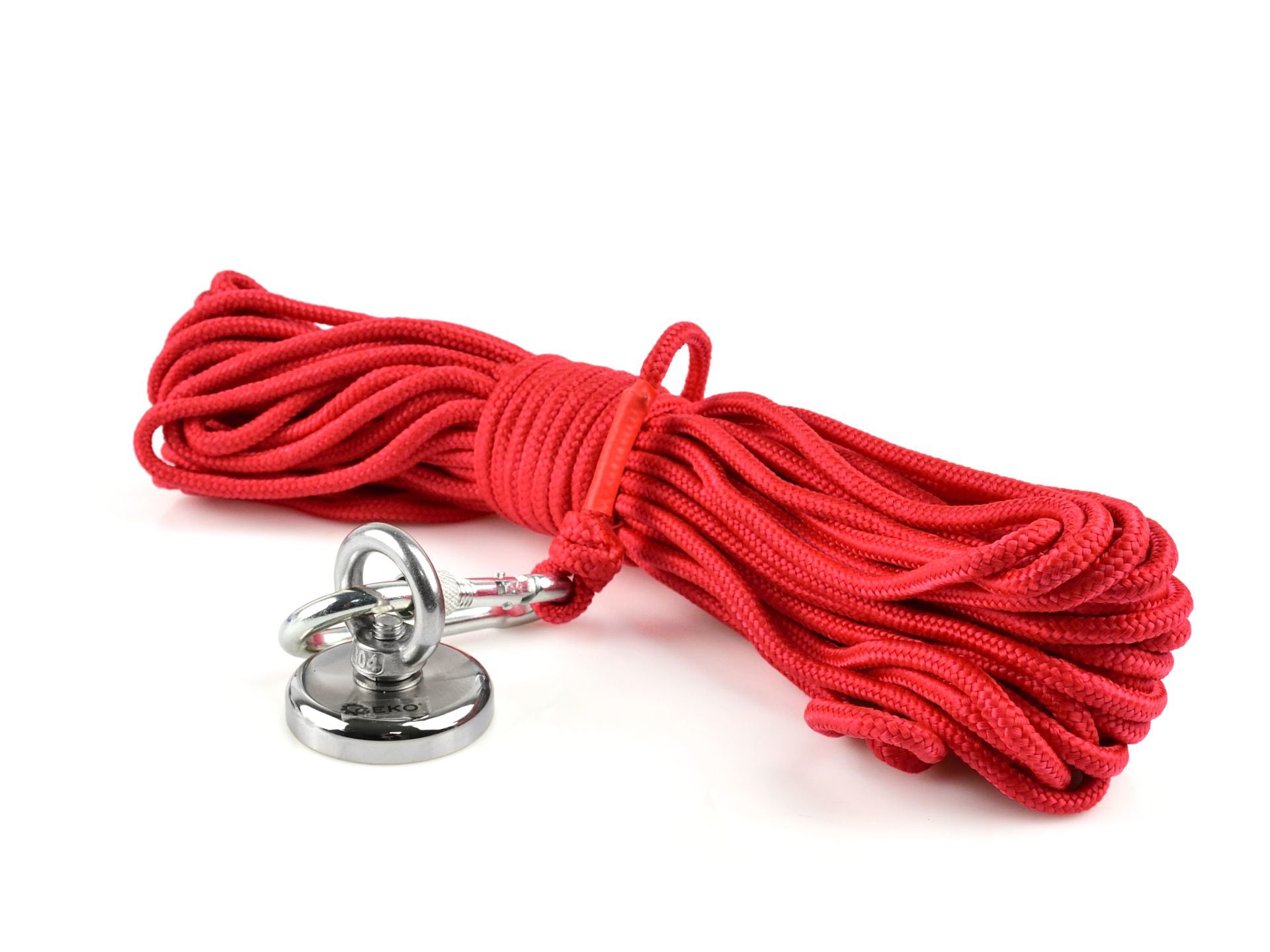 Magnet de neodim 50kg* cu maner superior, furnizat cu franghie de 20m, carabinier si manusi. Acest tip de magneti sunt folositi cu succes pentru a cauta obiecte metalice (metale feromagnetice) in apa.