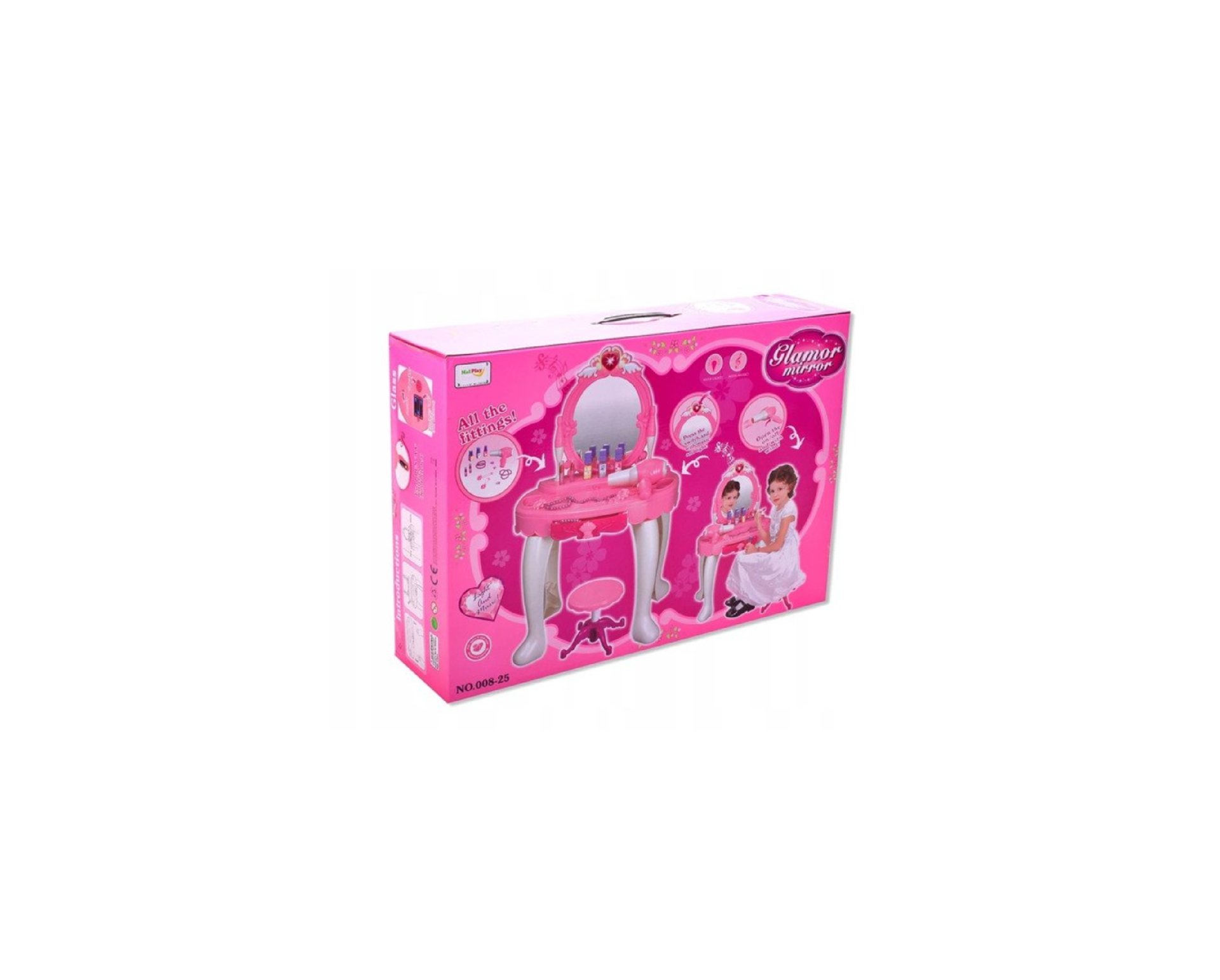 Masa de toaleta este solida. Setul include si un scaun stabil si solid. Este echipat cu un sertar util pentru depozitarea bibelourilor si gadgeturilor la indemana. Masa de toaleta cu lumini si sunete. Inima de pe oglinda se aprinde si reda muzica atunci cand este apasata.