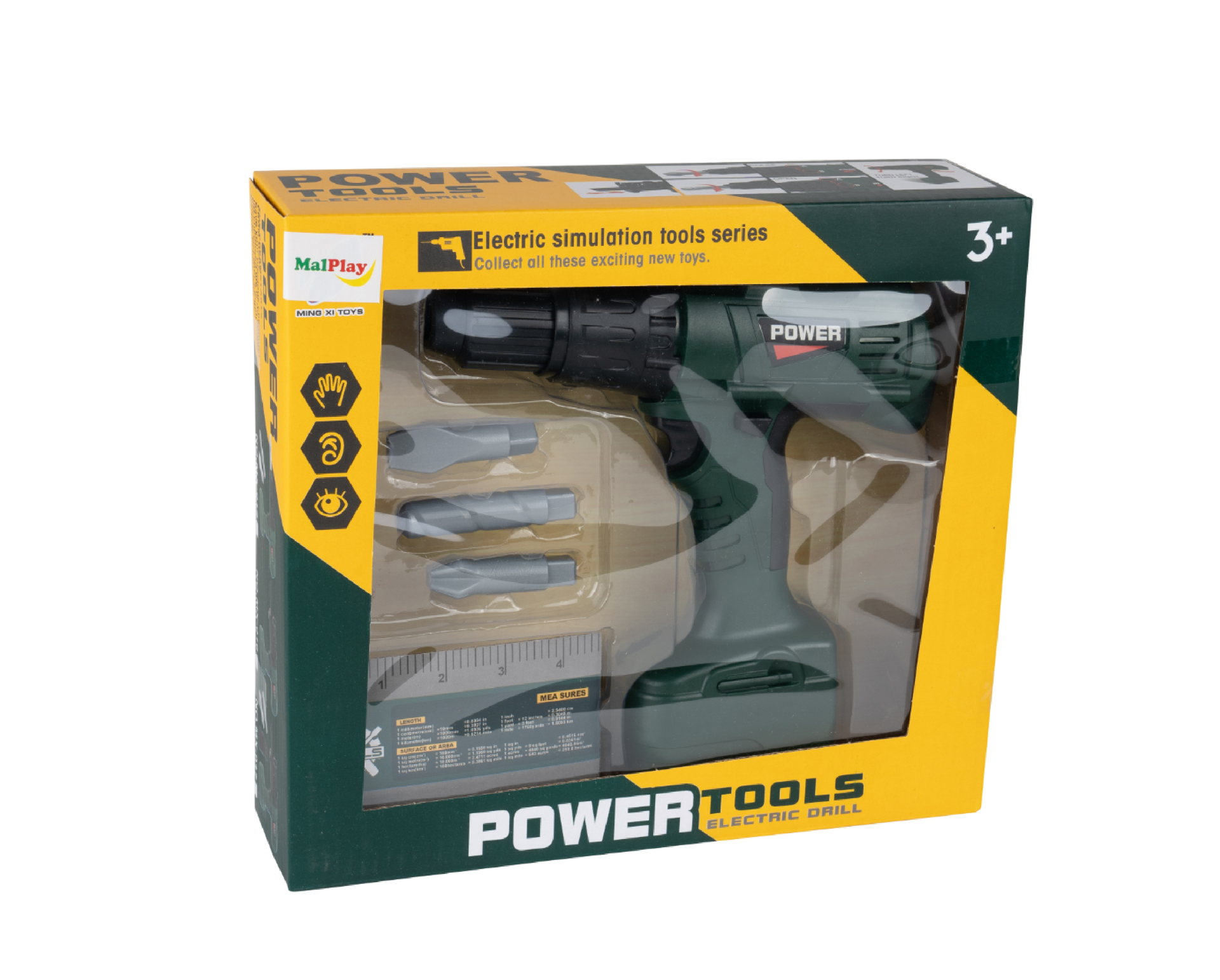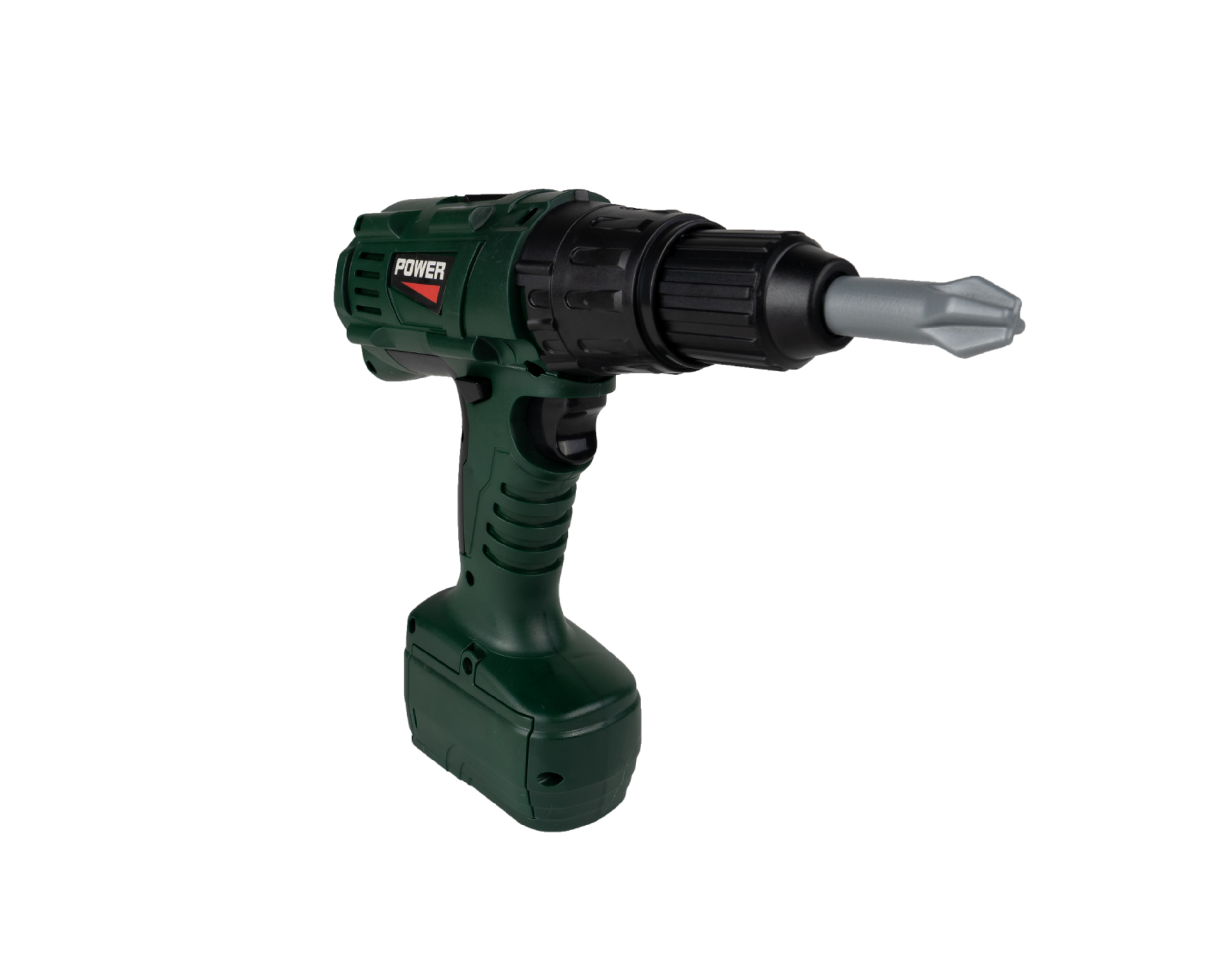 Masina de gaurit este alimentata de doua baterii AA. Cand este apasat, burghiul se roteste inainte sau inapoi, in functie de directia selectata. Un comutator special modifica rotatia de la stanga la dreapta, iar accesoriile incluse in set vor face distractia mai incitanta!