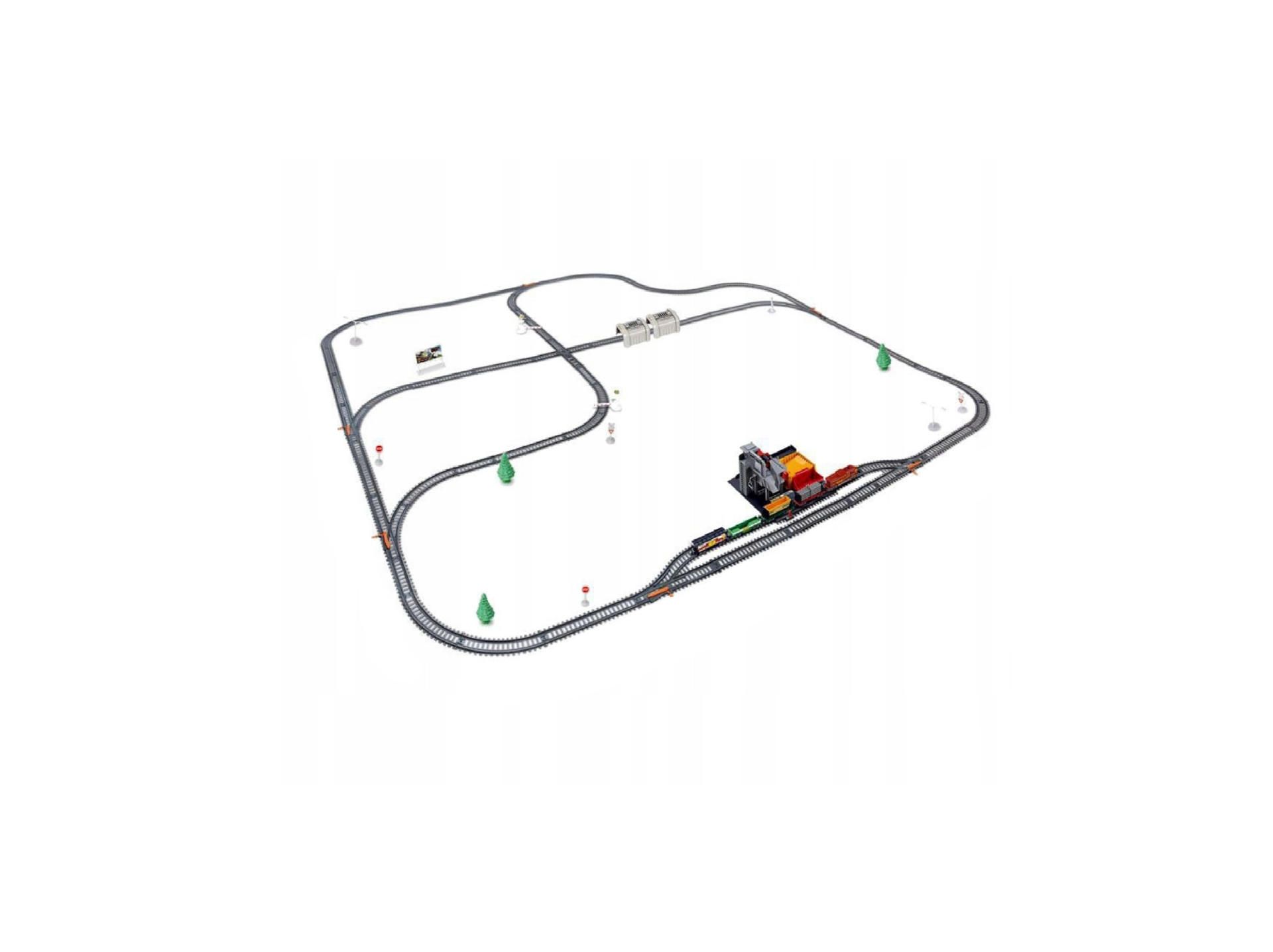 Uriasa pista este formata din 78 de elemente care pot fi aranjate dupa propriile idei. Setul include, printre altele, o pista, o mina cu componente mobile, un tren de marfa, vagoane, masini, un set de copaci si indicatoare, poduri. Elementele caii ferate si ale trenului sunt legate prin intermediul unor carlige speciale, care sunt amplasate la capatul locomotivei si al fiecarui vagon. Senile au parghii speciale.