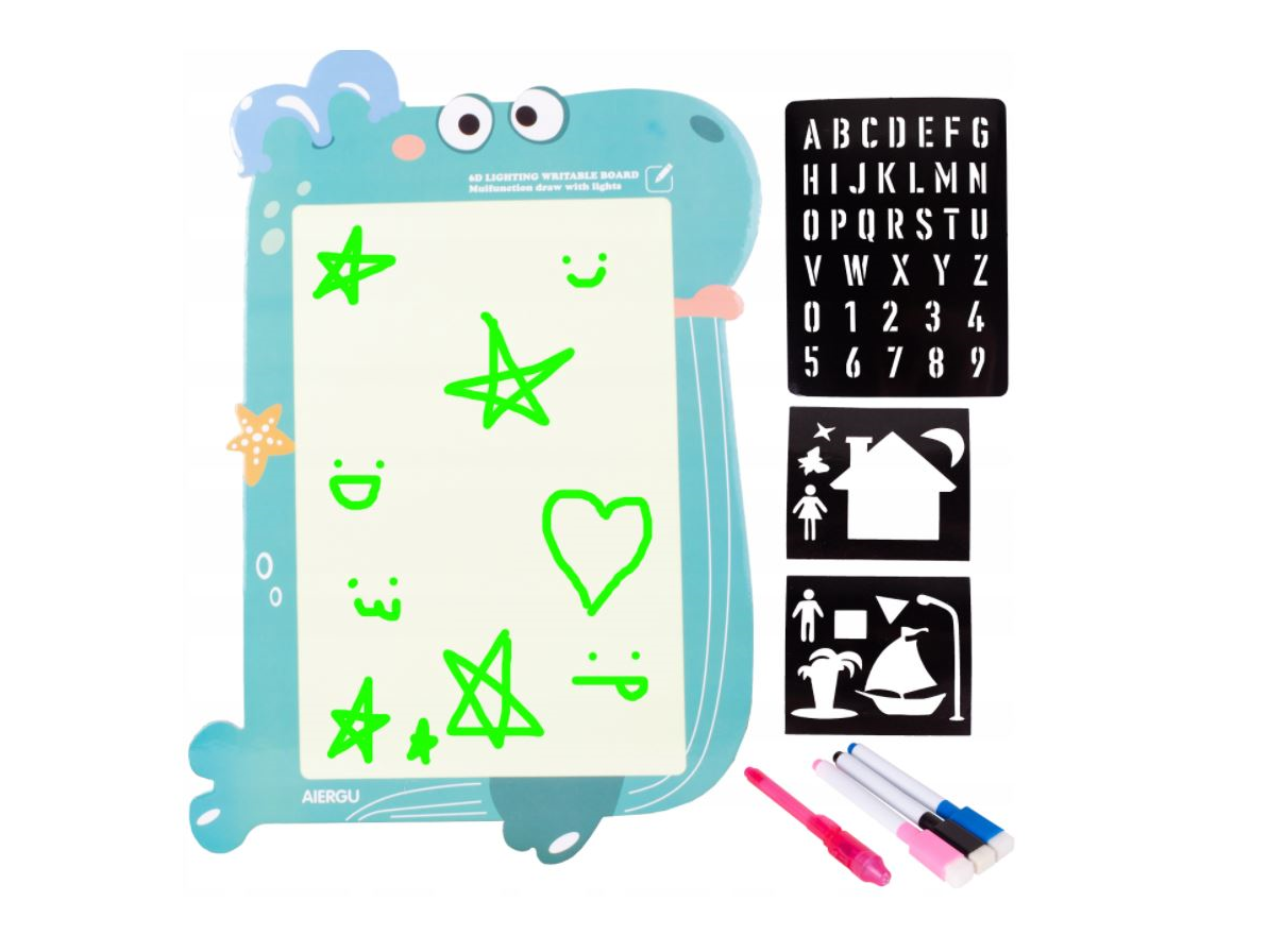 Tabla noastra este o jucarie ideala care va permite sa dezvoltati imaginatia copilului si abilitatile sale artistice inca de la o varsta frageda. Copiii mici iubesc sa deseneze si, datorita tablei noastre, o pot face ore intregi fara a folosi tone de hartie. Tableta in forma de creatura draguta este realizata din material usor, rezistent
