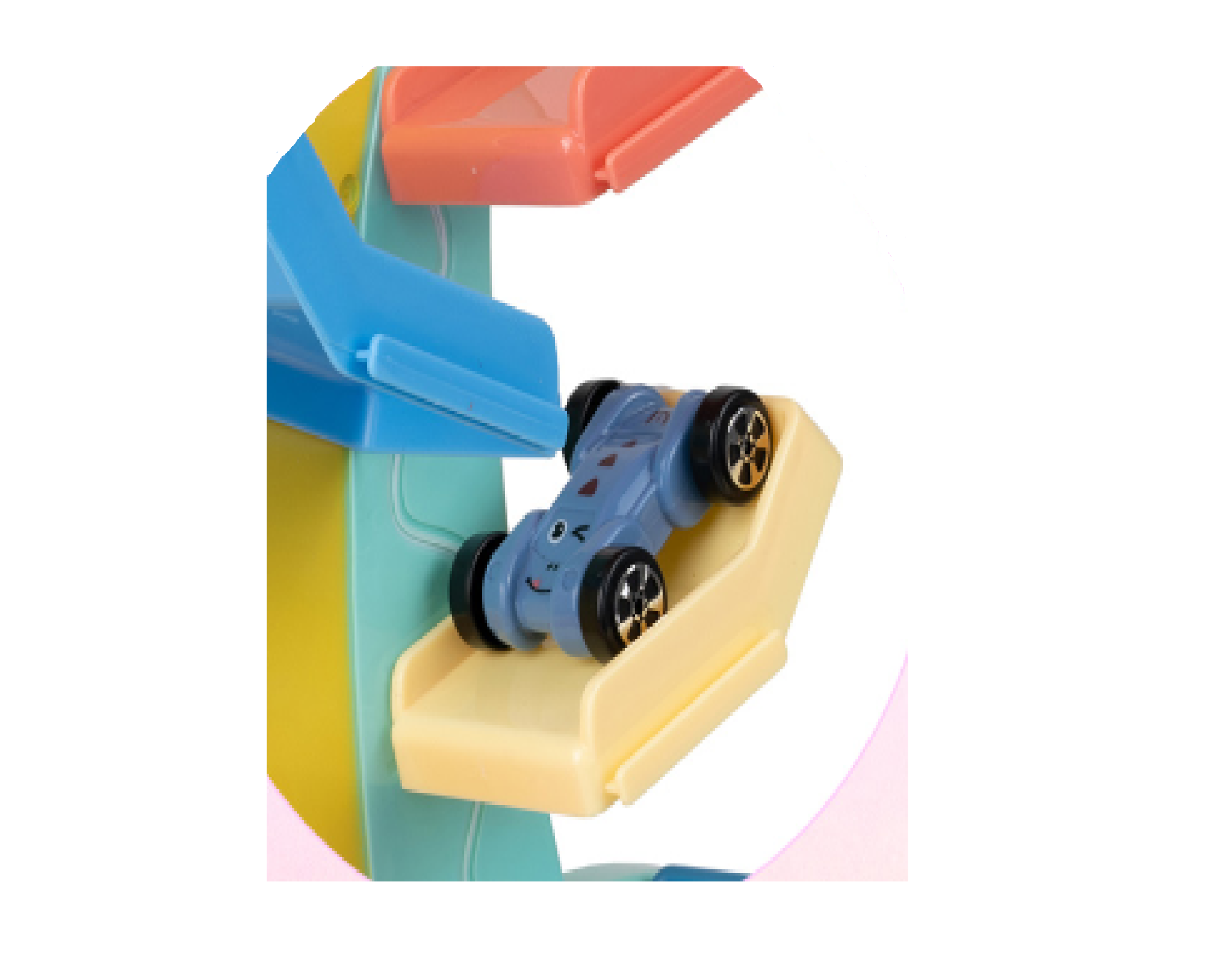 Cursa de masini de jucarie este o jucarie grozava pentru dezvoltarea abilitatilor manuale si intelegerea cauzei si efectului.