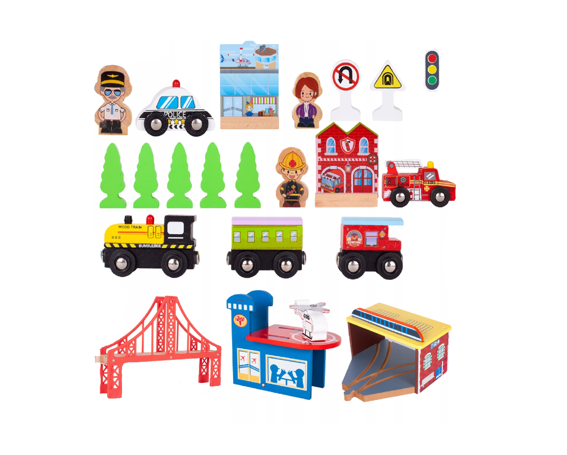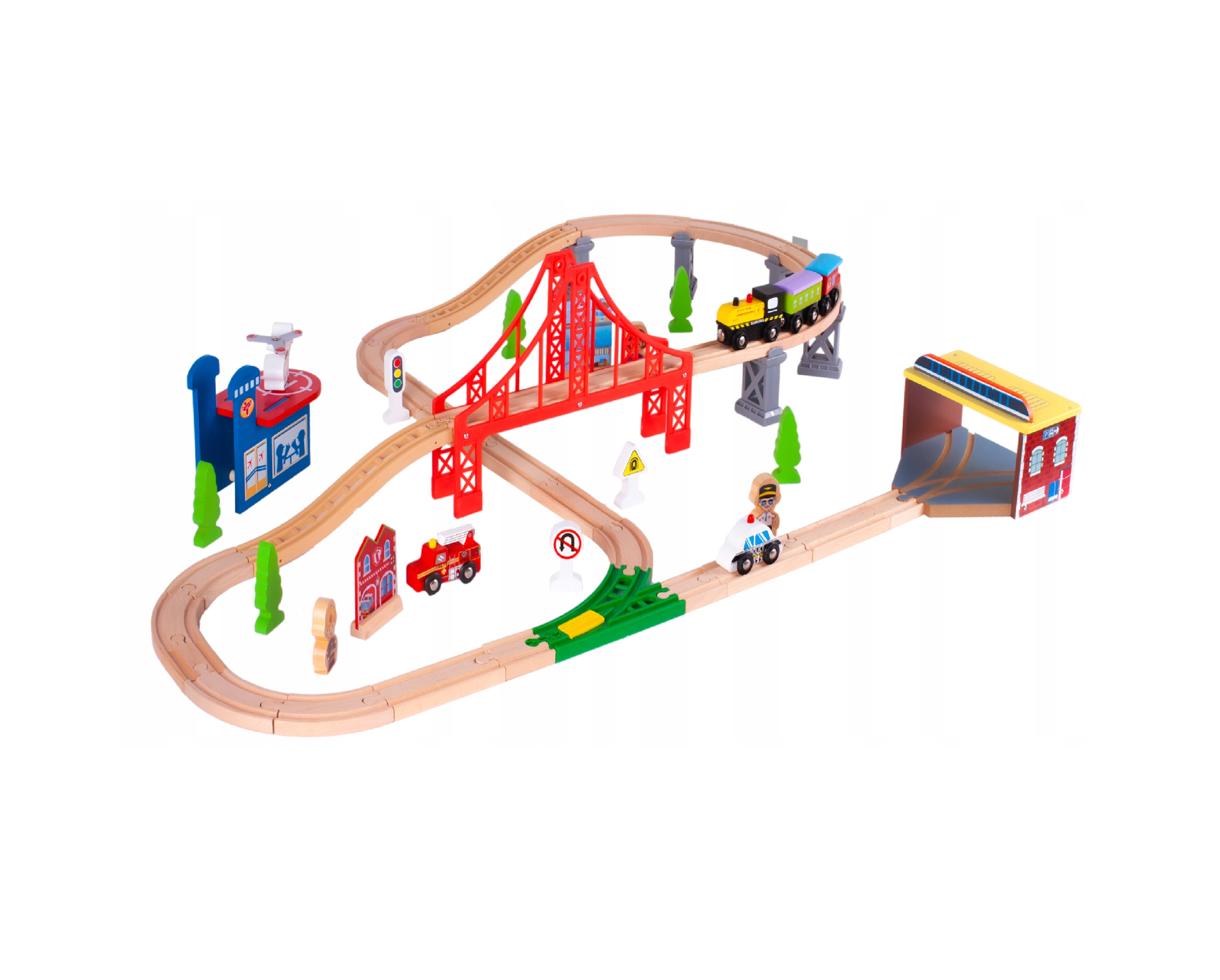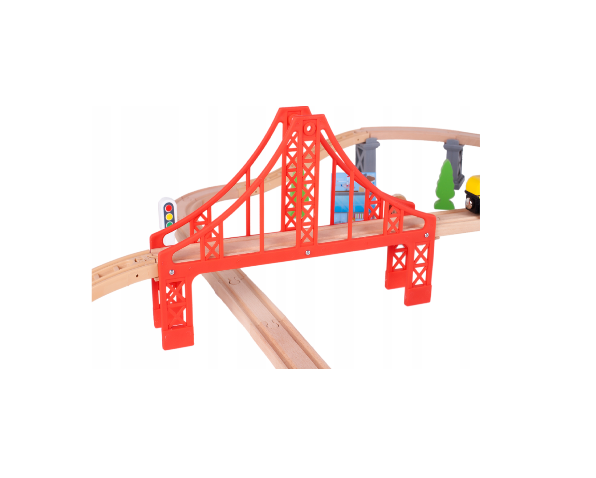O cale ferata din lemn cu tren va stimula imaginatia si creativitatea copilului dumneavoastra. Un tanar feroviar poate simti rolul unui constructor creandu-si propria cale cu elemente ale unui oras.