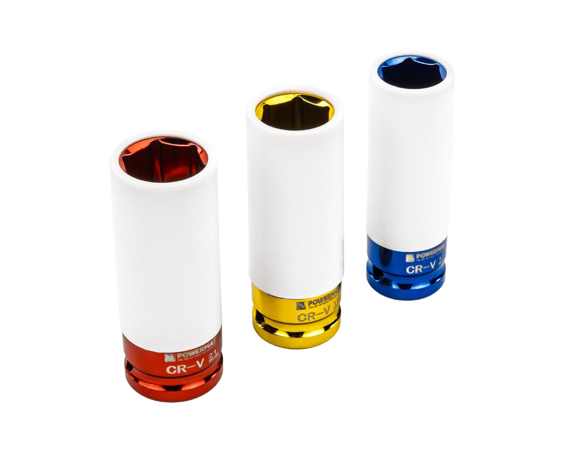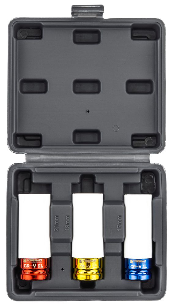 Setul include 3 dimensiuni: 17 mm, 19 mm si 21 mm, asigurand compatibilitatea completa cu cele mai comune suruburi de pe jantele din aluminiu.