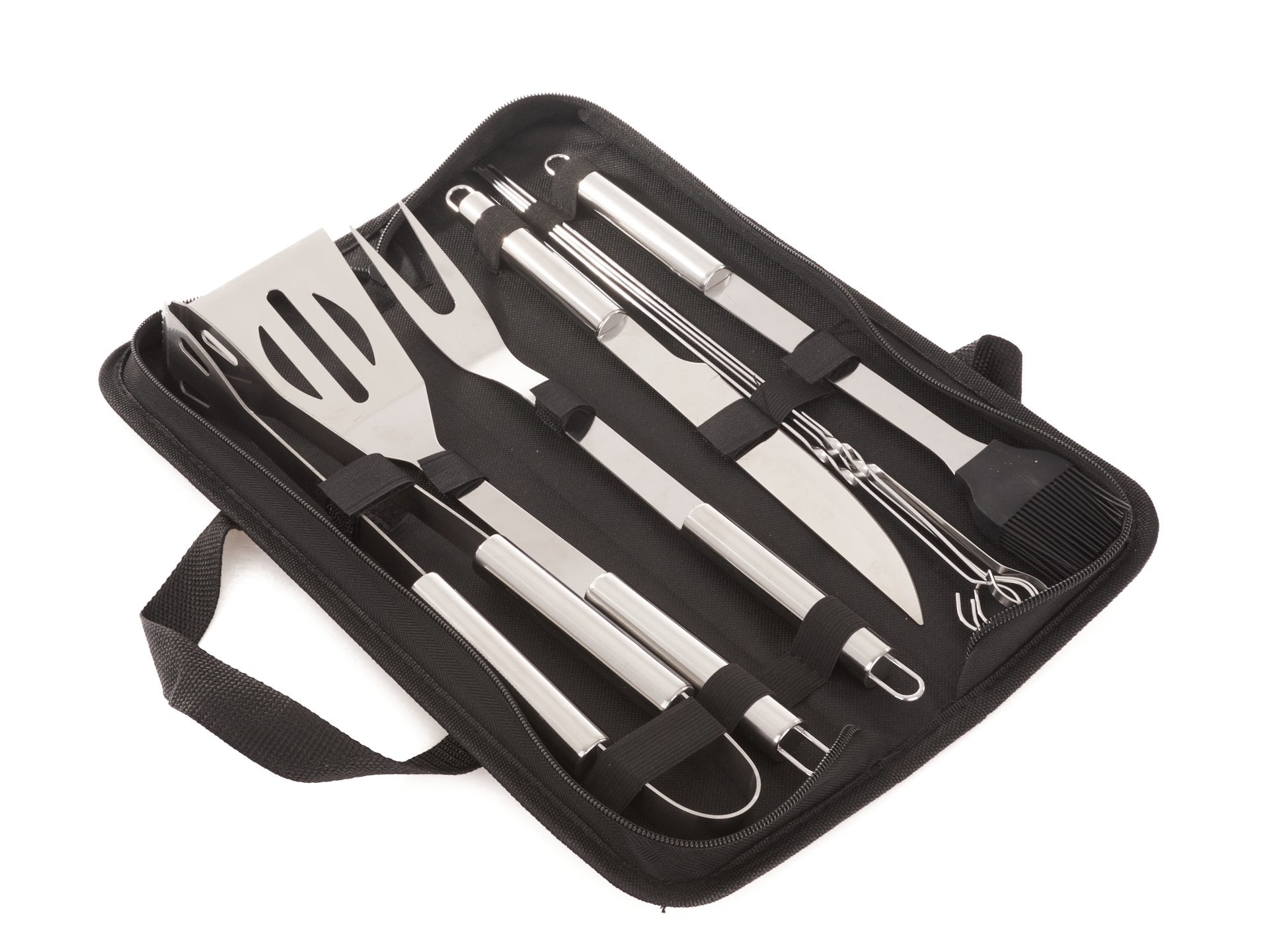 Un set complet de ustensile pentru gratar, format din 10 elemente. Acest set include o varietate de unelte esentiale pentru a te bucura de experienta gratarului la maxim. Fiecare instrument este fabricat cu atentie din materiale durabile si rezistente la caldura, asigurandu-ti o utilizare de lunga durata.