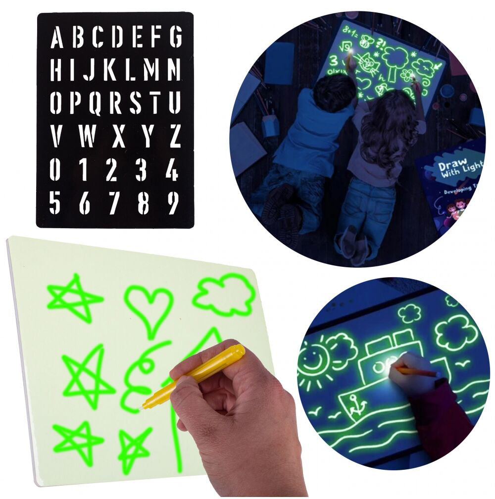 Tabla magica de desen cu lumina LED este o idee perfecta pentru a invata prin joaca. Datorita setului nostru educational, copilul dumneavoastra poate realiza multe desene diferite, dezvoltandu-si in acelasi timp imaginatia si abilitatile artistice.