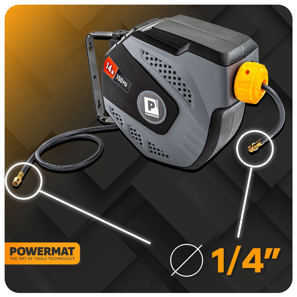Tamburul pneumatic automat pentru furtun este perfect pentru utilizare in ateliere, parcele, gradini si spatii utilitare casnice.
