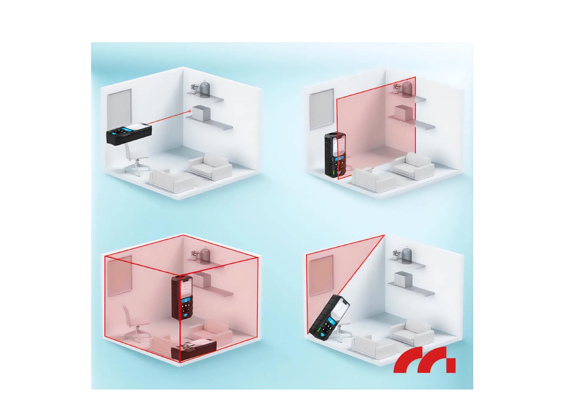 - Domeniu de masurare pana la 50 de metri - ideal atat pentru spatii mici, cat si pentru spatii mari