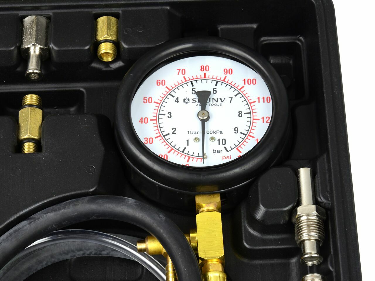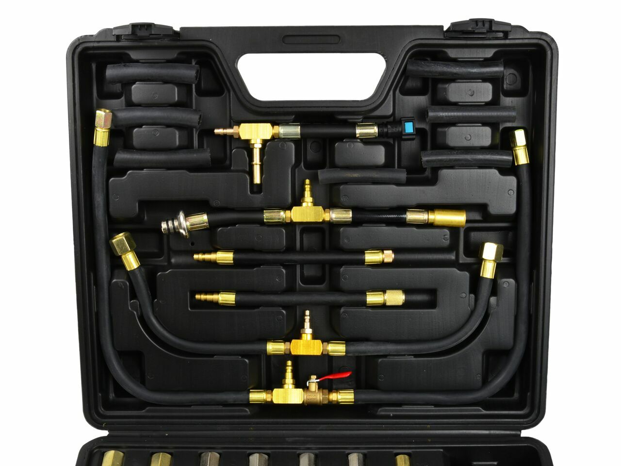 Tester de presiune de injecție în sistem (benzină). Set multifuncțional pentru măsurarea presiunii de ardere a benzinei. Kitul funcționează cu cele mai multe mașini ale mărcilor japoneze, americane și europene.