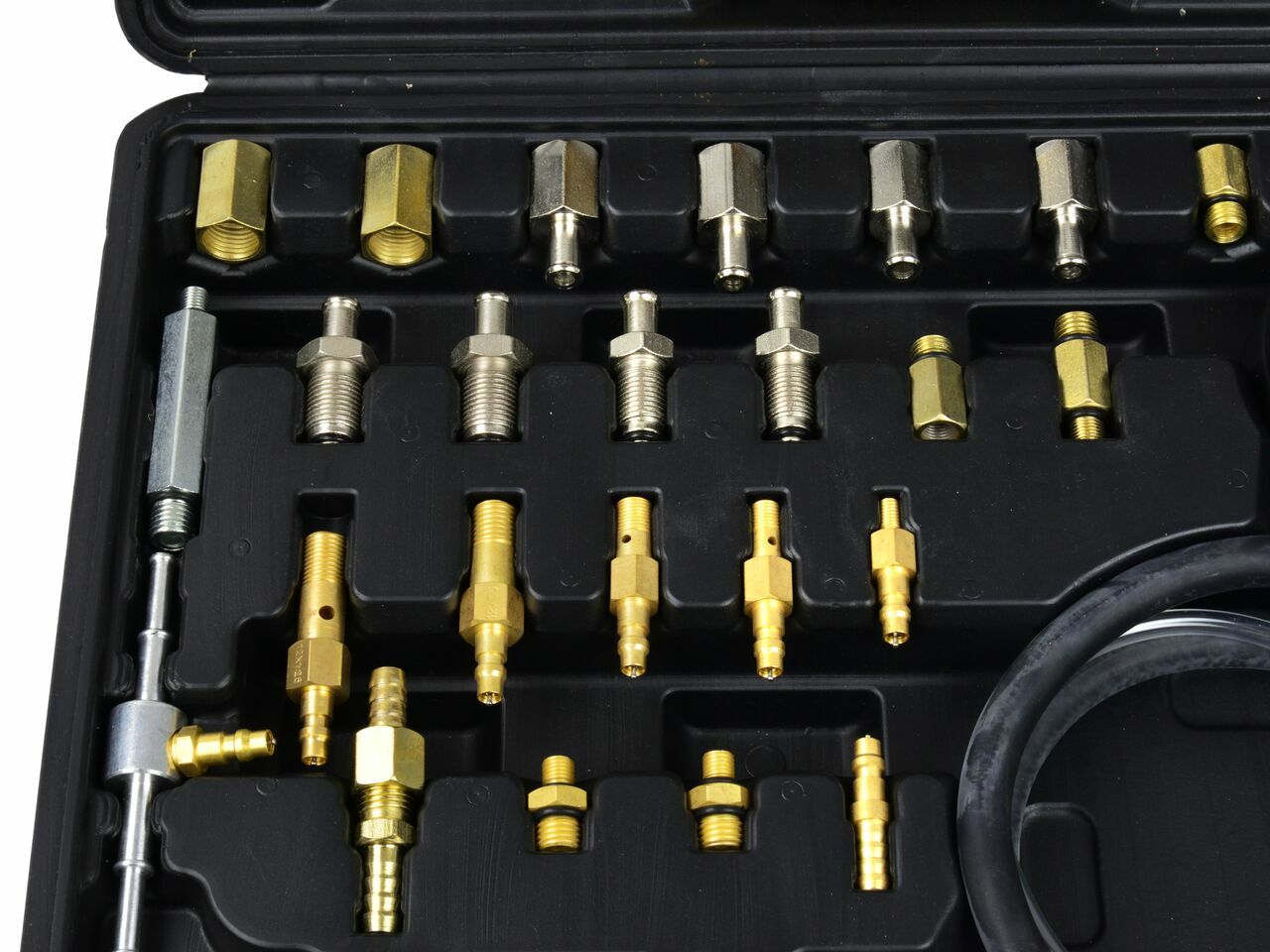 Kitul include adaptoare și accesorii pentru a se potrivi majorității sistemelor de injecție a combustibilului.