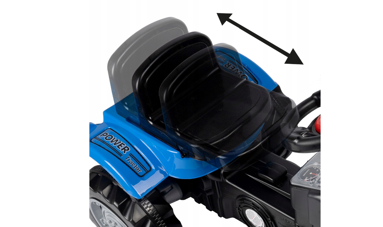 Tractorul este echipat cu o sa confortabila cu extensie reglabila, ceea ce faciliteaza reglarea tractorului la inaltimea copilului nostru. Aceasta solutie va permite sa utilizati vehiculul timp de multi ani si sa va asigurati ca copilul dumneavoastra nu il va depasi curand.