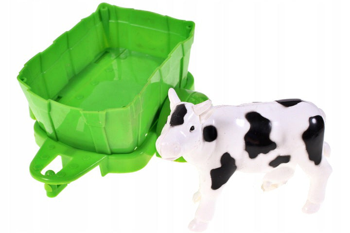 Dupa pornirea tractorului, acesta se deplaseaza inainte si inapoi, caracterul fermierului se leagana in lateral si luminile (ochii) si șemineul sunt aprinse. Se canta o melodie si fermierul spune cuvintele hallo. Un tractor neobisnuit cu un fermier, o remorca cu o gaina sau o vaca este o jucarie educativa, alimentata cu baterii, special conceputa pentru copii pentru a le stimula dezvoltarea pe mai multe niveluri in acelasi timp.