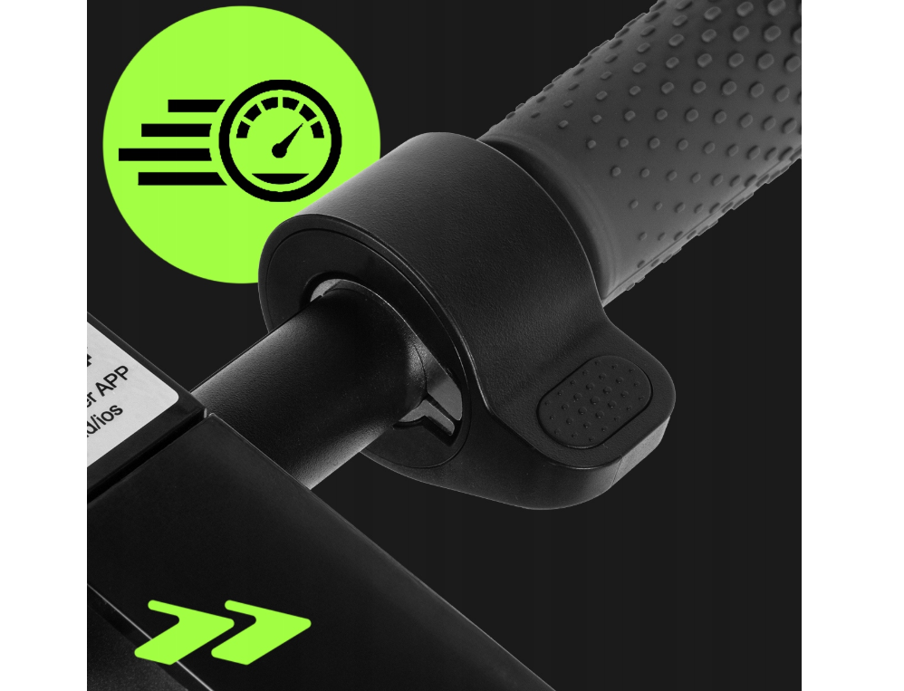 - Functia de control al vitezei de croaziera - pentru a activa controlul vitezei de croaziera in timpul conducerii, trebuie sa conduceti cu o viteza constanta pentru o perioada mai lunga de timp. Dupa un timp, controlul vitezei de croaziera se activeaza si scuterul se deplaseaza cu o viteza constanta fara a fi nevoie sa apasati pedala de acceleratie.
