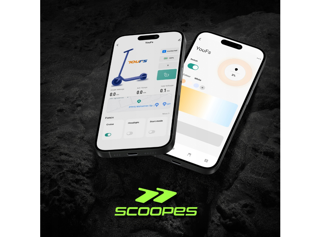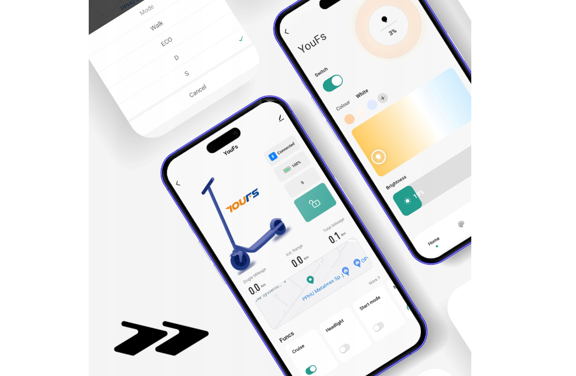 - Aplicatia mobila YouFs, datorita careia veti putea monitoriza parametrii de condus si ajustati setarile scuterului in timp real