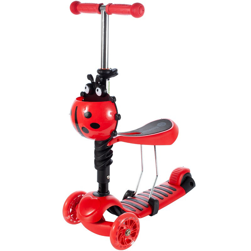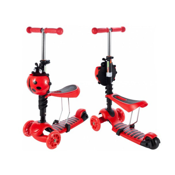 Trotineta pentru copii MalPlay 2 in 1 cu scaunel si roti luminoase, Rosu