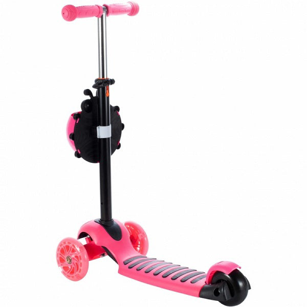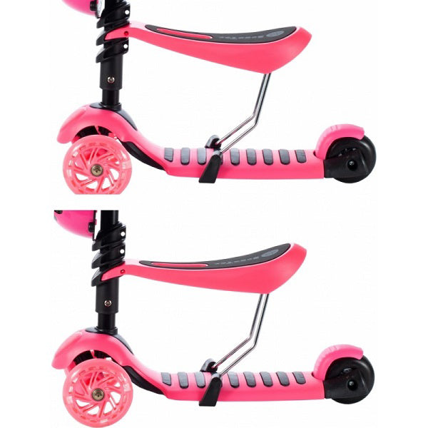 Trotineta pentru copii MalPlay 2 in 1 cu scaunel si roti luminoase, Roz
