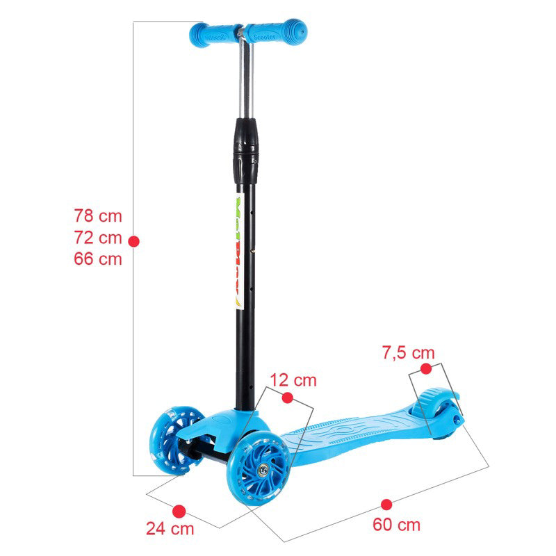 Trotineta pentru copii reglabila, cu roti luminoase, Albastra
