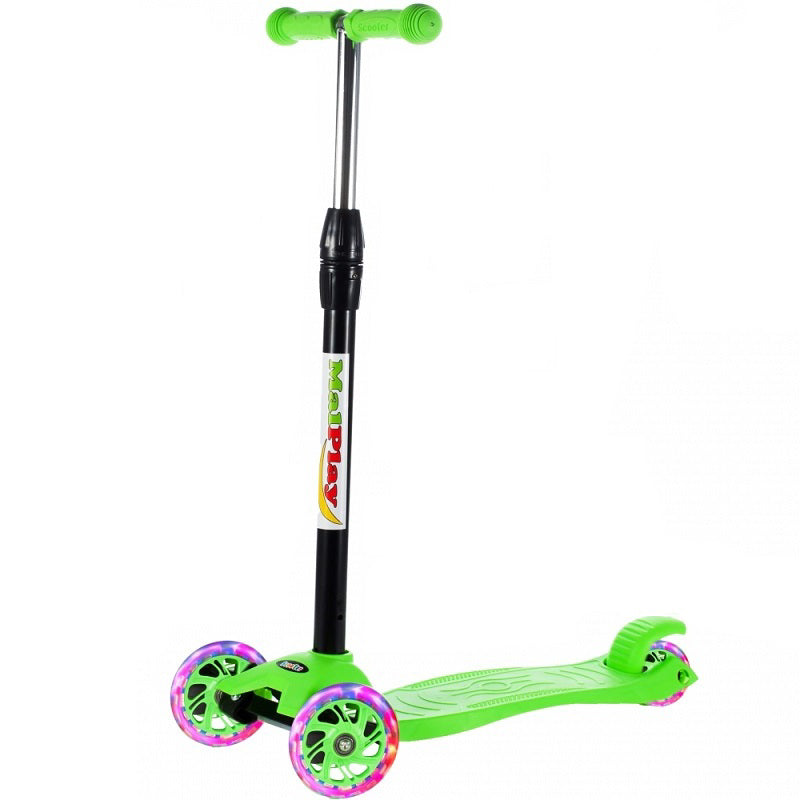 Trotineta pentru copii reglabila, cu roti luminoase, Verde