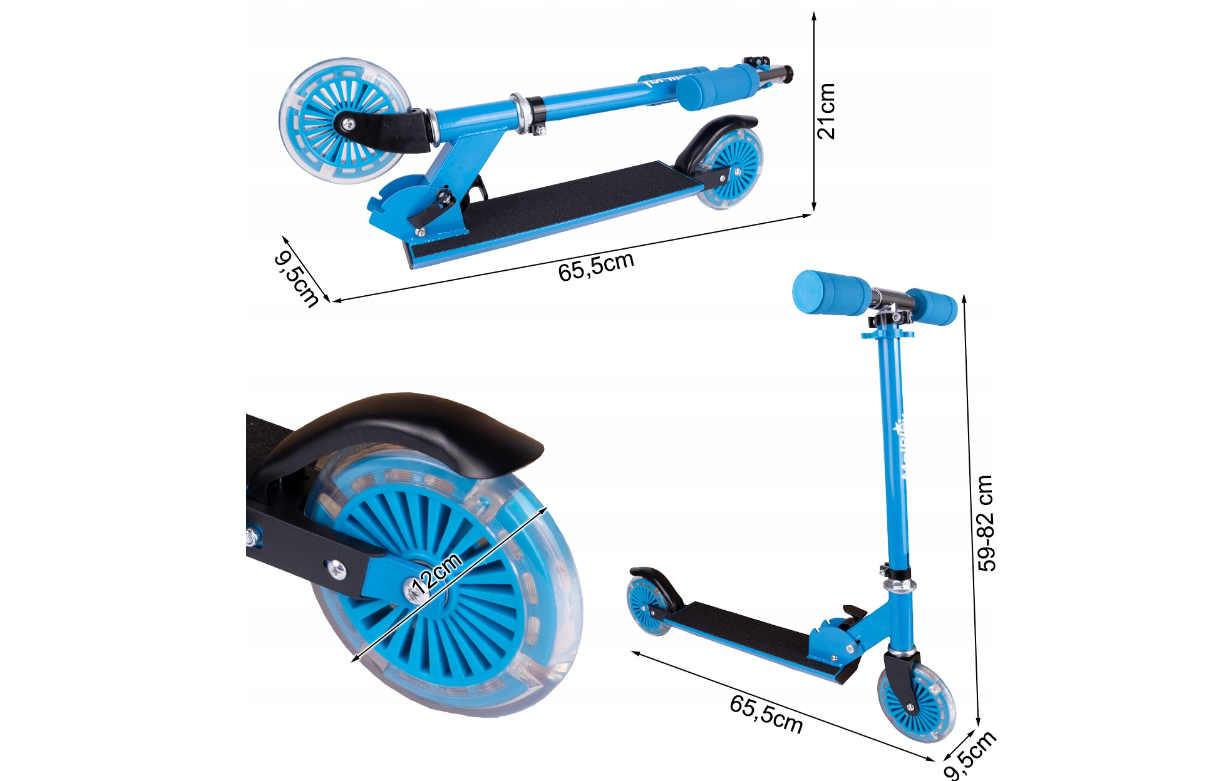 - Dimensiuni trotineta: 65,5 x 9,5 x inaltime 59-82 cm