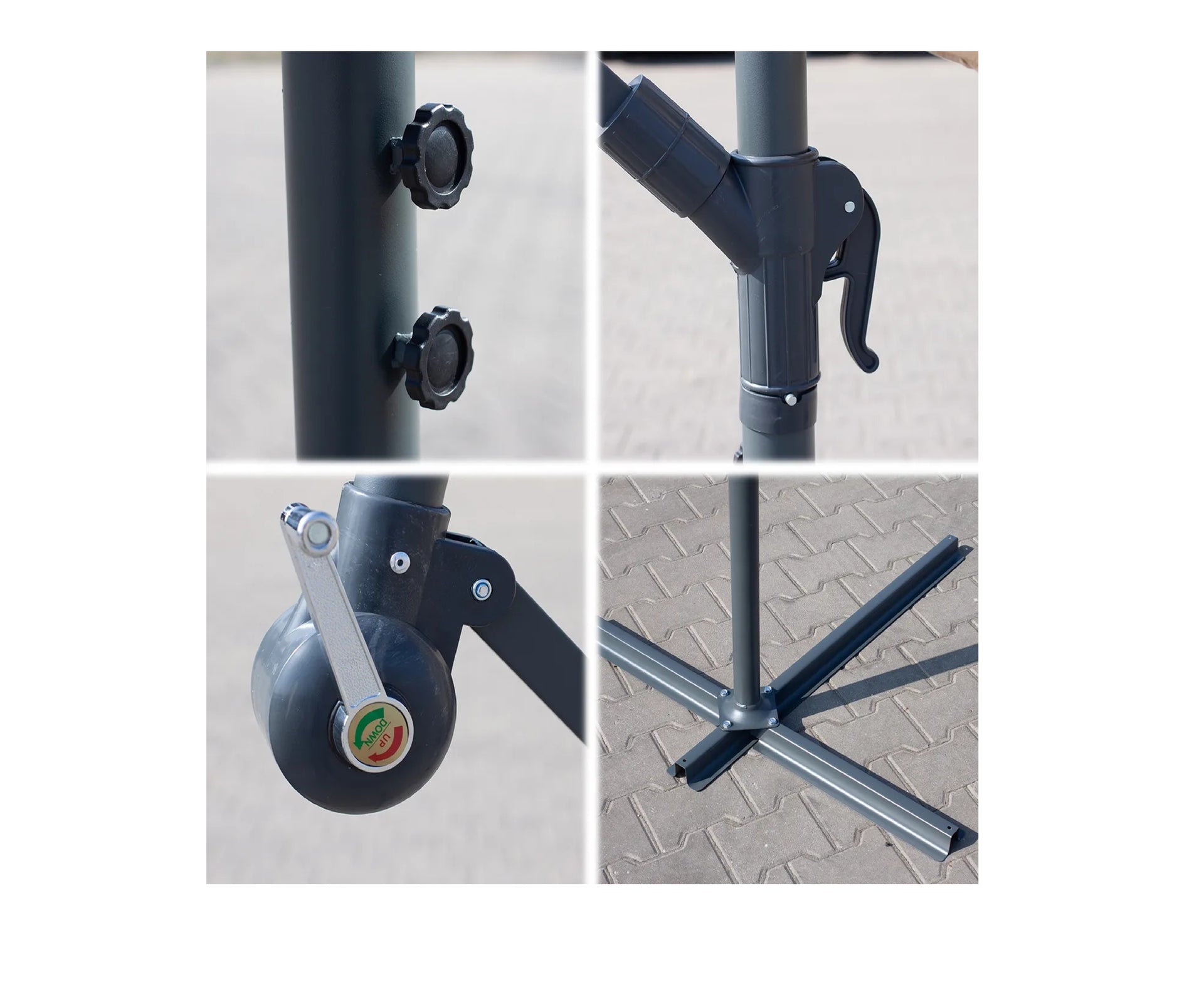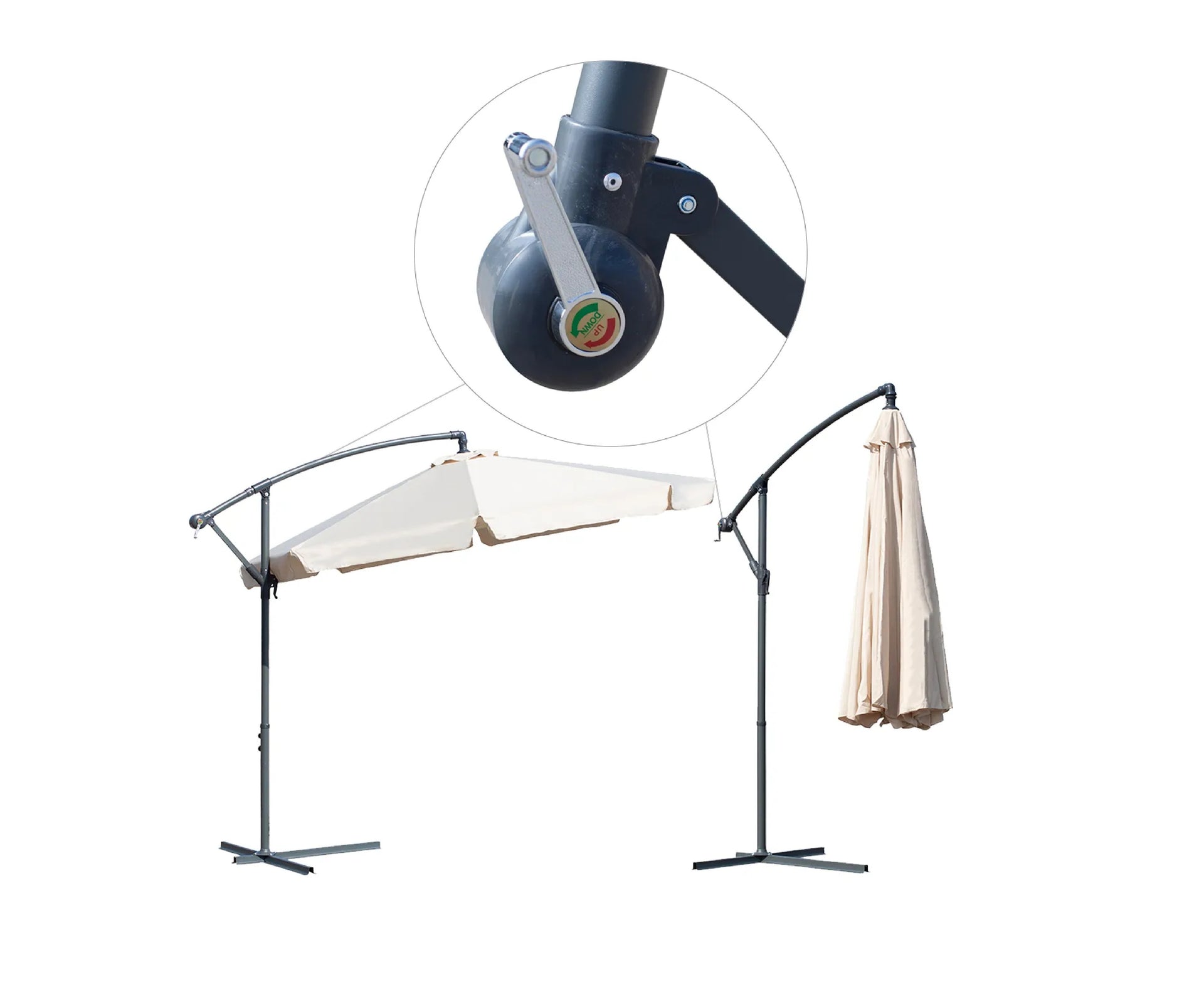 Acest lucru se datoreaza manivelei usor de utilizat care deschide si inchide copertina umbrelei. Pur si simplu rotiti-o , iar umbrela de gradina se va deschide sau plia. Aceasta este o solutie extrem de sigura pentru utilizatori.