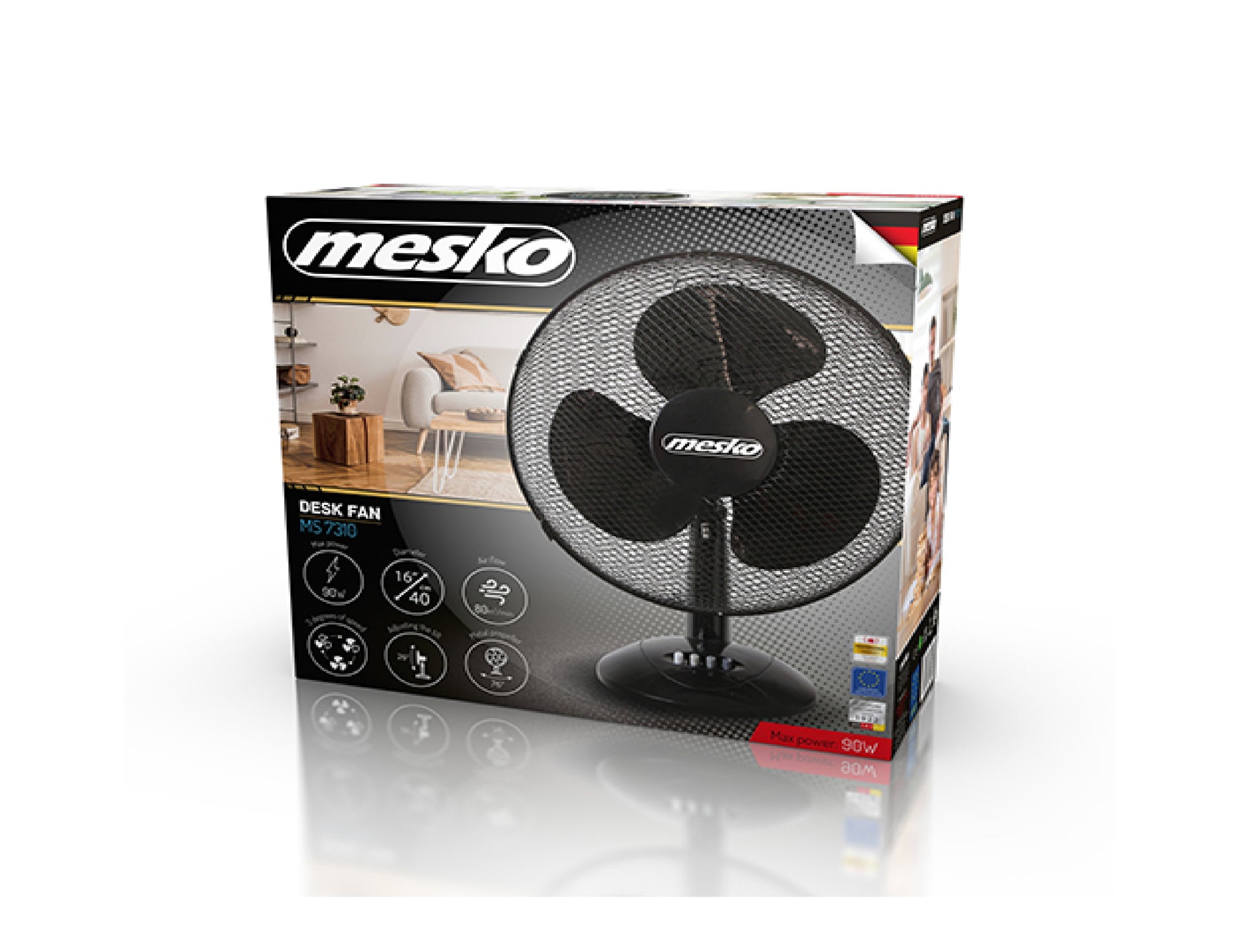 Un ventilator eficient evaluat la max. 90W. Raceste aerul dintr-o camera data si ii ofera o cantitate mai mare de aer proaspat. Are o baza foarte stabila, care permite plasarea acestuia chiar si pe o suprafata neuniforma, fara sa va temeti ca va cadea. Datorita unui cap rotativ, un dispozitiv poate raci o zona mai mare. Reglarea unghiului face posibila schimbarea fluxului de aer de la orizontal la vertical. Ventilatorul MS 7310 are un diametru urias de 40 cm care mareste suprafata de racire si trei setari de viteza permit sa decida cat de puternic va fi fluxul de aer.