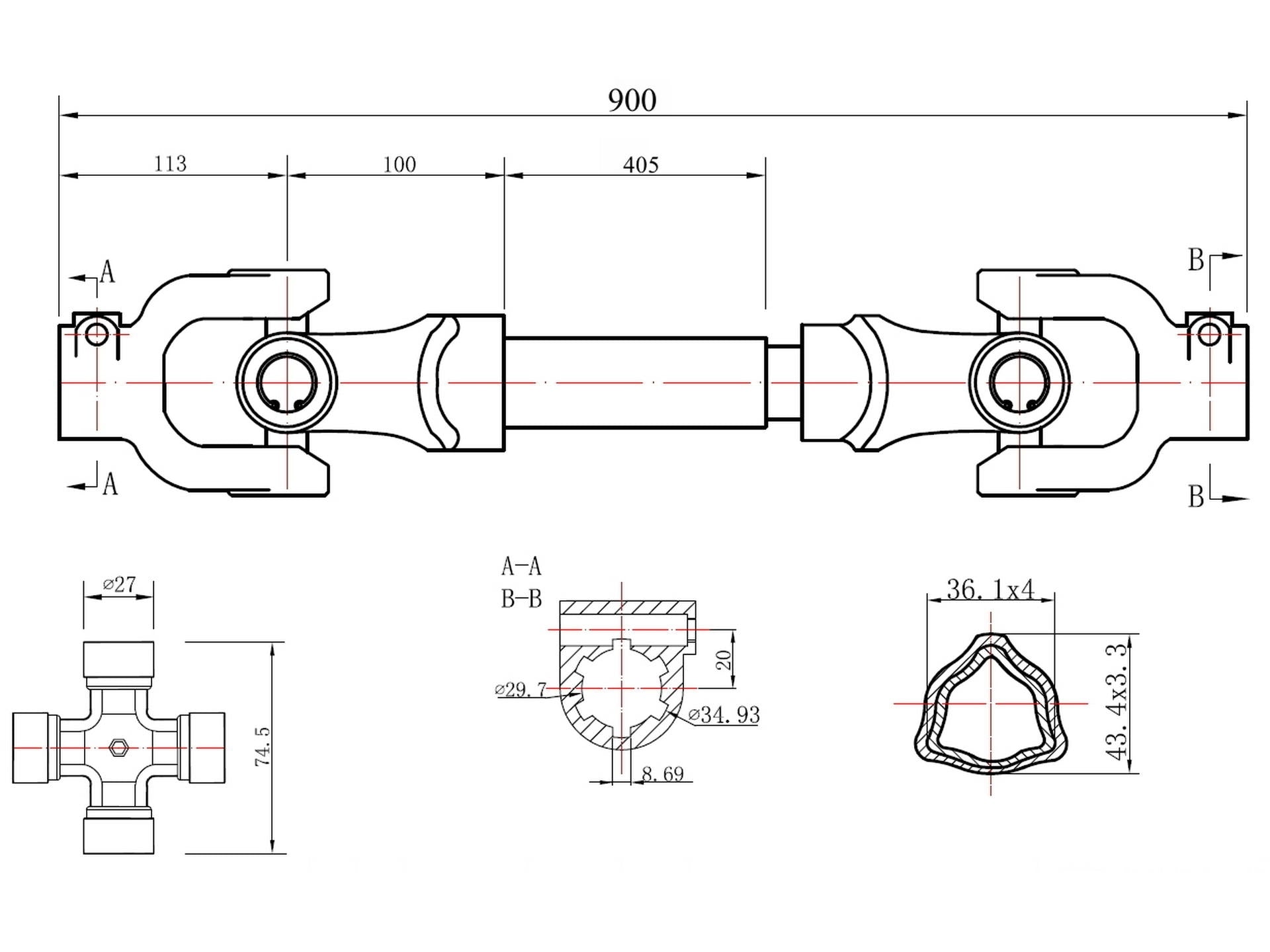 - Îmbinări încrucișate: 27 x 74,5 mm