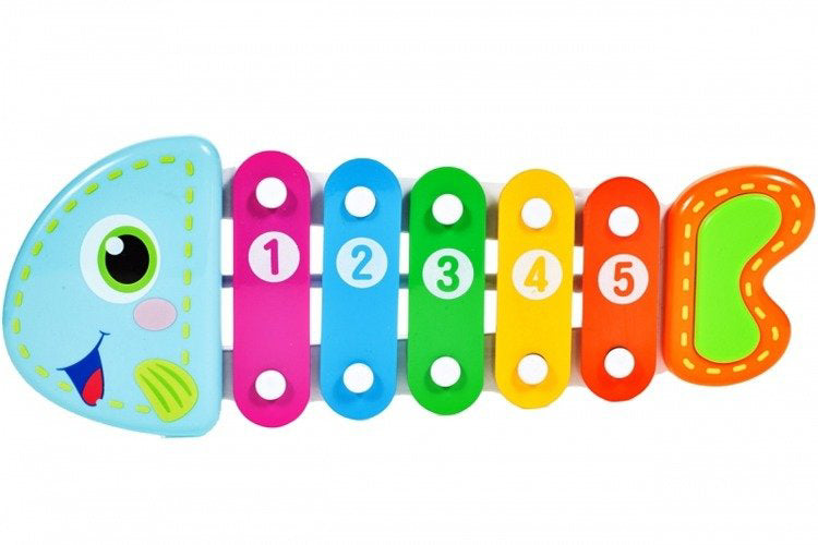 Un instrument grozav pentru a invata ritmul. Ele stimuleaza coordonarea auz-motorie, angajand mai multe simturi in acelasi timp. Primul instrument de la o varsta frageda va va permite sa dezvoltati abilitati muzicale care vor da roade in viitor. Chimvalele sunt vopsite in culori diferite, astfel incat sa-ti poti invata si copilul sa le distinga. Un peste vesel va face distractia mai usoara.