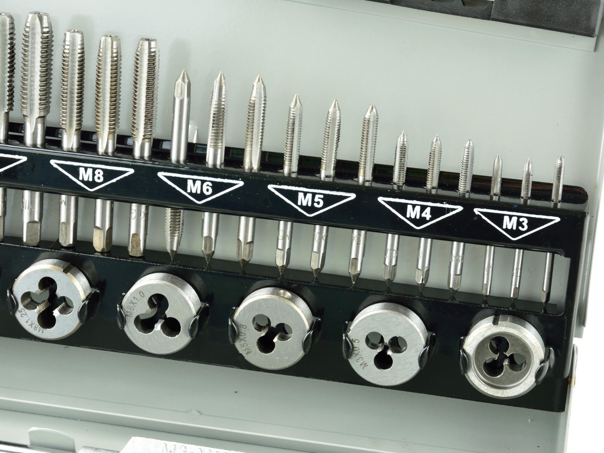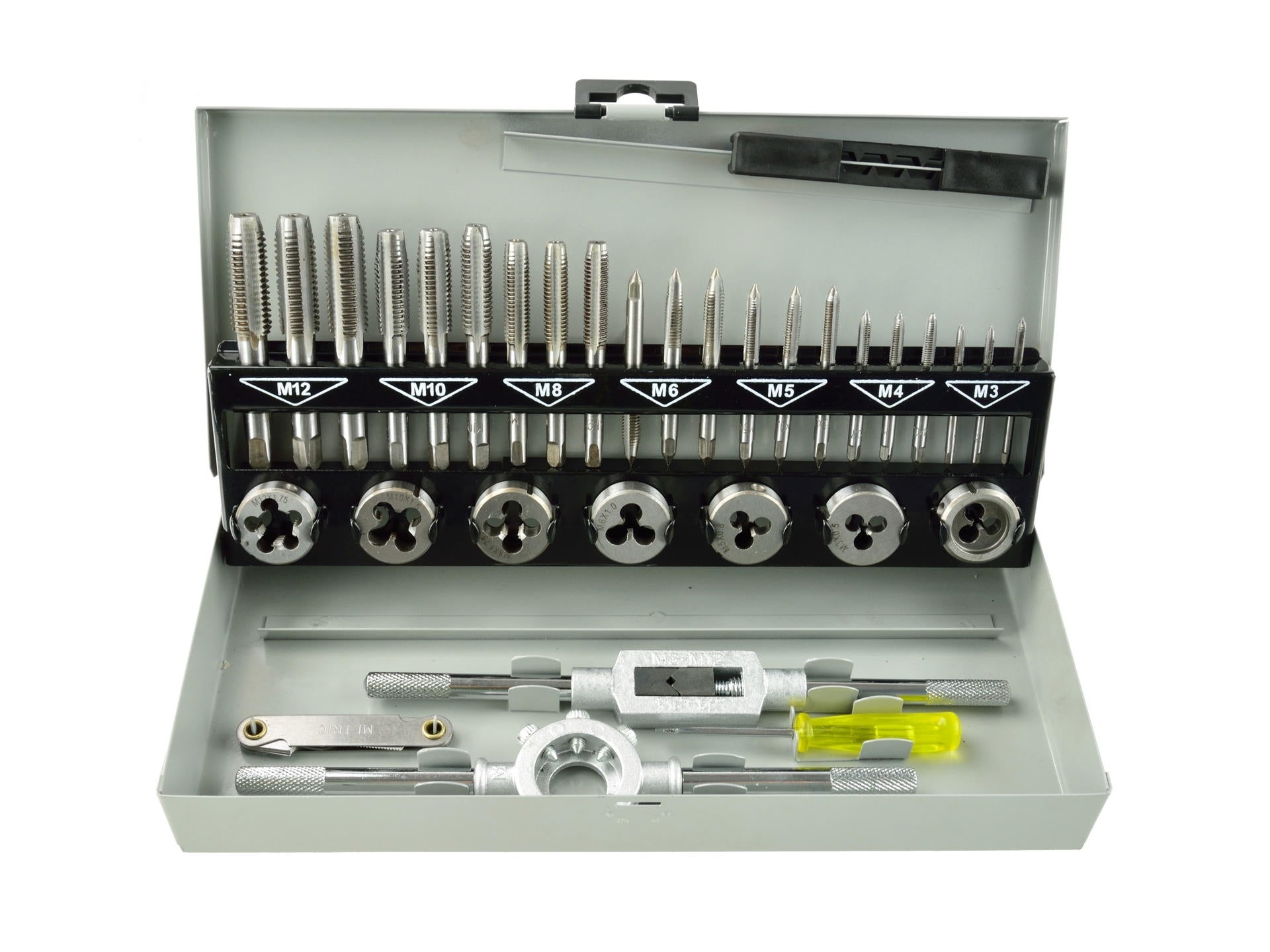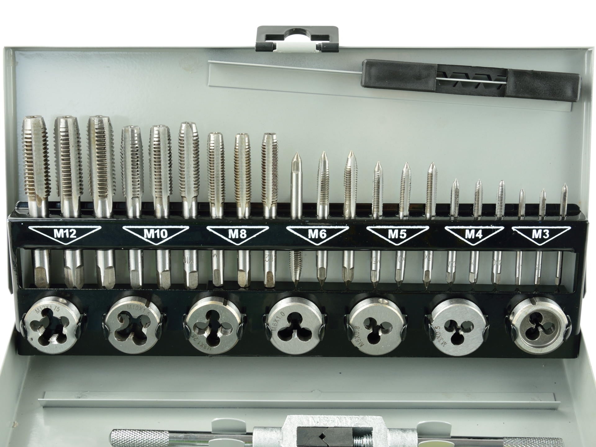 Set modern de robinete și matrițe M3 - M12. Kitul include 32 de instrumente diferite din oțel de înaltă calitate.