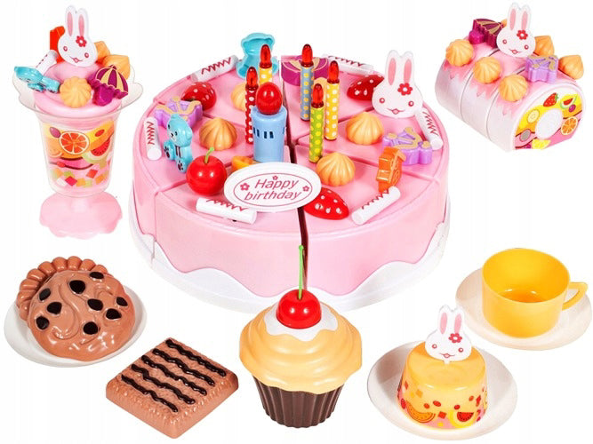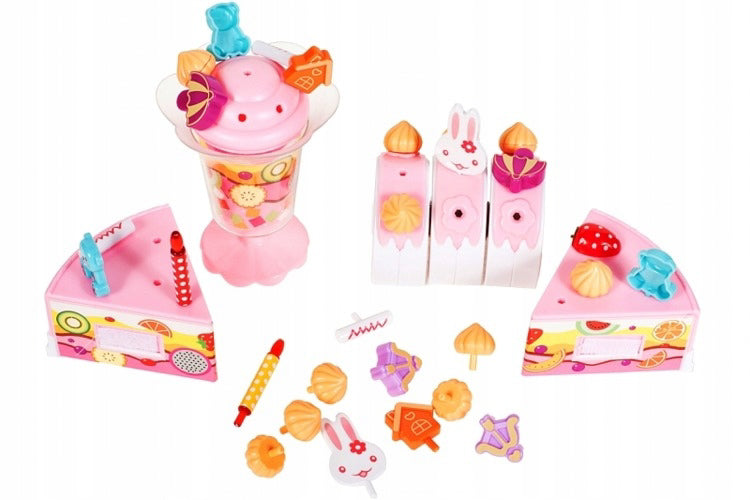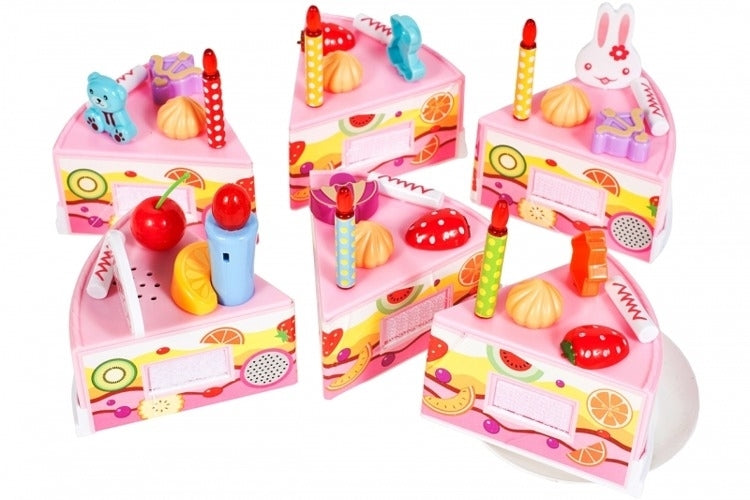 Tortul este format din 6 bucati care sunt atasate una cu cealalta cu velcro. Acestea pot fi usor separate prin „taiere" cu un cutit de plastic. Fiecare piesa poate fi decorata dupa bunul plac, cu numeroase decoratiuni în forma de bomboane. Elementul principal al tortului are o lumanare dupa care se canta melodia „La multi ani”, iar lumanarea în sine se aprinde. Ca accesorii suplimentare, setul are si o rulada care poate fi taiat în acelasi mod, plus farfurii, tacamuri, ceasca de înghetata, cana si o prajitura cu cirese.
