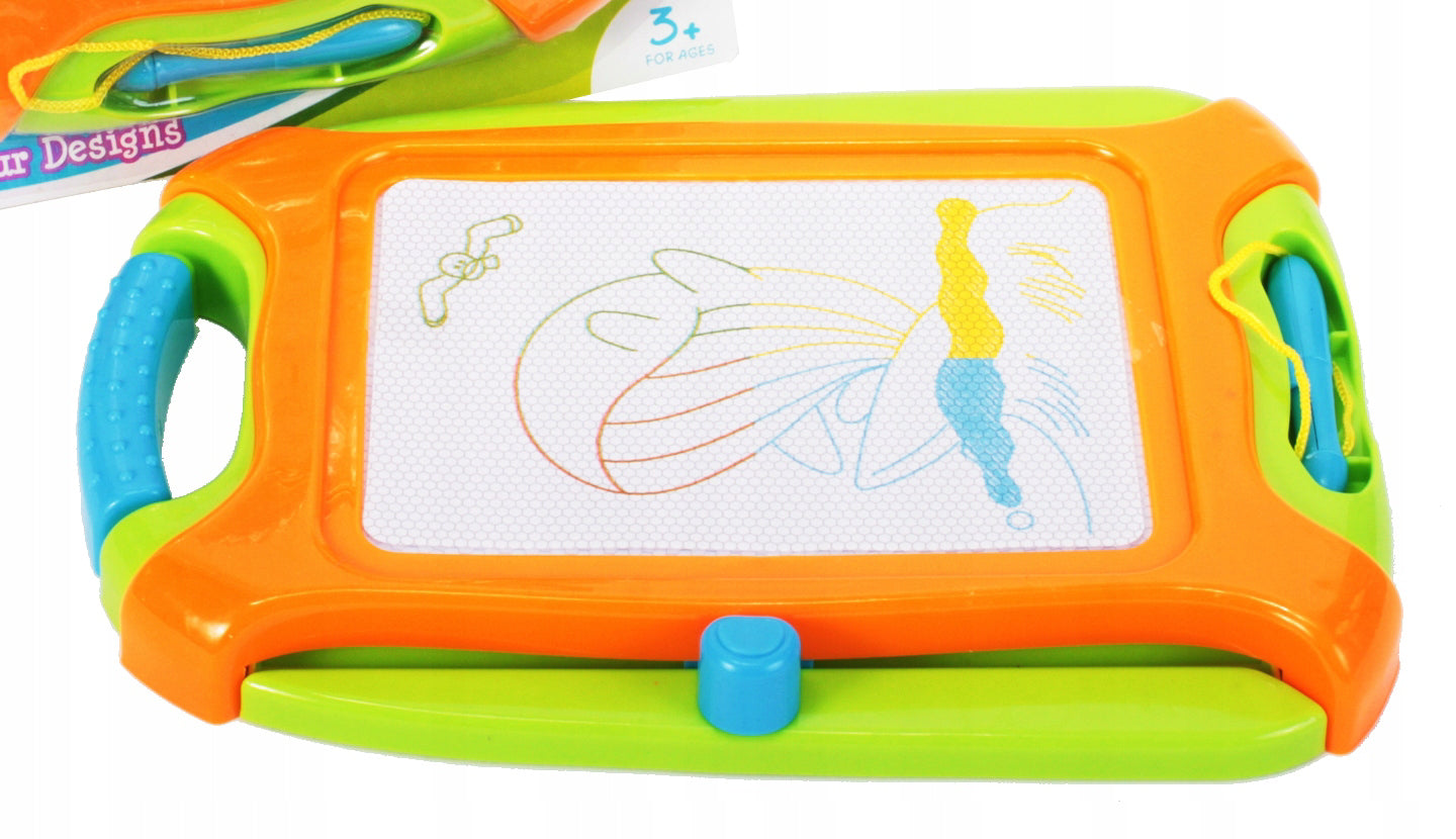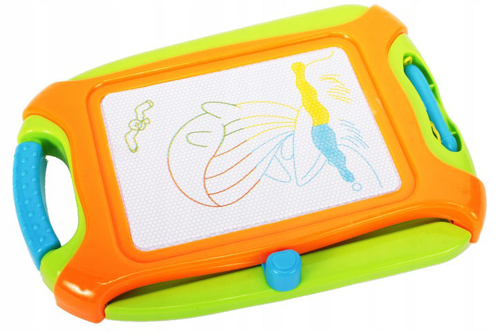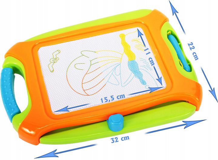 Placa magnetica este echipata cu un ecran de înalta calitate împartit în patru zone în care puteti desena în 4 culori diferite: verde, galben, albastru si maro. De asemenea, are un maner, astfel încat sa îl puteti lua literalmente oriunde. Desenand pe o astfel de tabla, copilul îsi dezvolta imaginatia si îl încurajeaza sa practice scrisul. Nu necesita hartie sau cerneala.