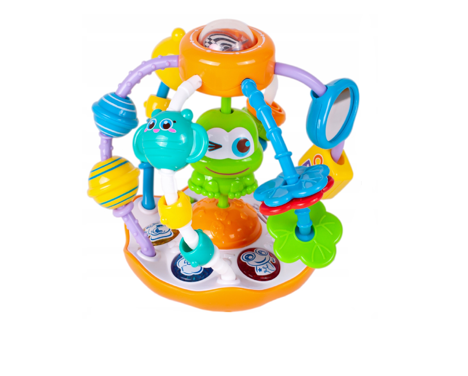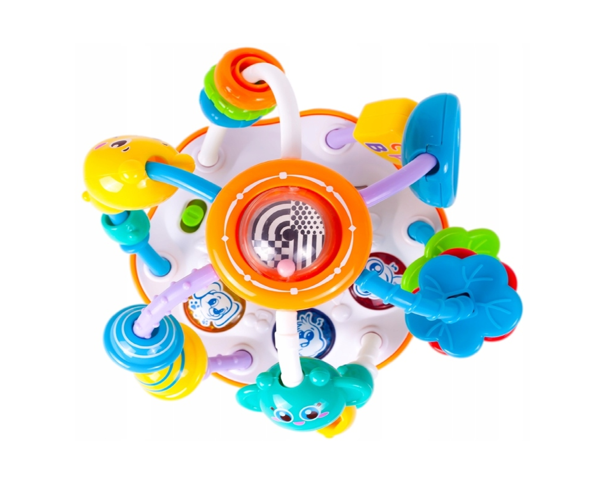 Ii va oferi copilului tau momente pline de distractie si bucurie, iar tu, privindu-l, vei zambi nemasurat. Sunetele si luminile emise sunt concepute pentru a dezvolta perceptia vizuala si auditiva a copilului dumneavoastra, precum si coordonarea ochi-mana. Formele speciale si culorile vii incurajeaza copilul sa faca miscare si sa se joace, stimuland astfel dezvoltarea individuala.