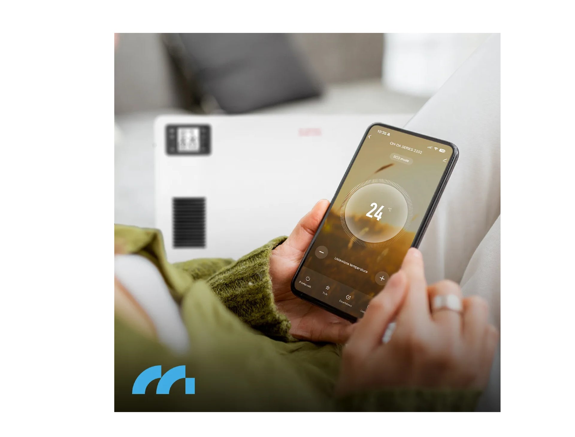 Modulul WiFi incorporat va permite sa controlati dispozitivul de la distanta folosind aplicatia TUYA Smart sau SMART Life de pe smartphone , astfel incat sa puteti regla intotdeauna setarile incalzitorului la nevoile dvs., chiar daca sunteti departe de casa. Telecomanda inclusa ofera un plus de confort, permitandu-va sa controlati toate functiile fara a fi nevoie sa parasiti canapea.