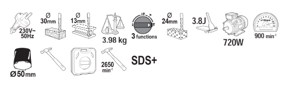 Ciocan rotopercutor RDP-HD39 cu 3 functii 3,8J 720W, Raider 013127