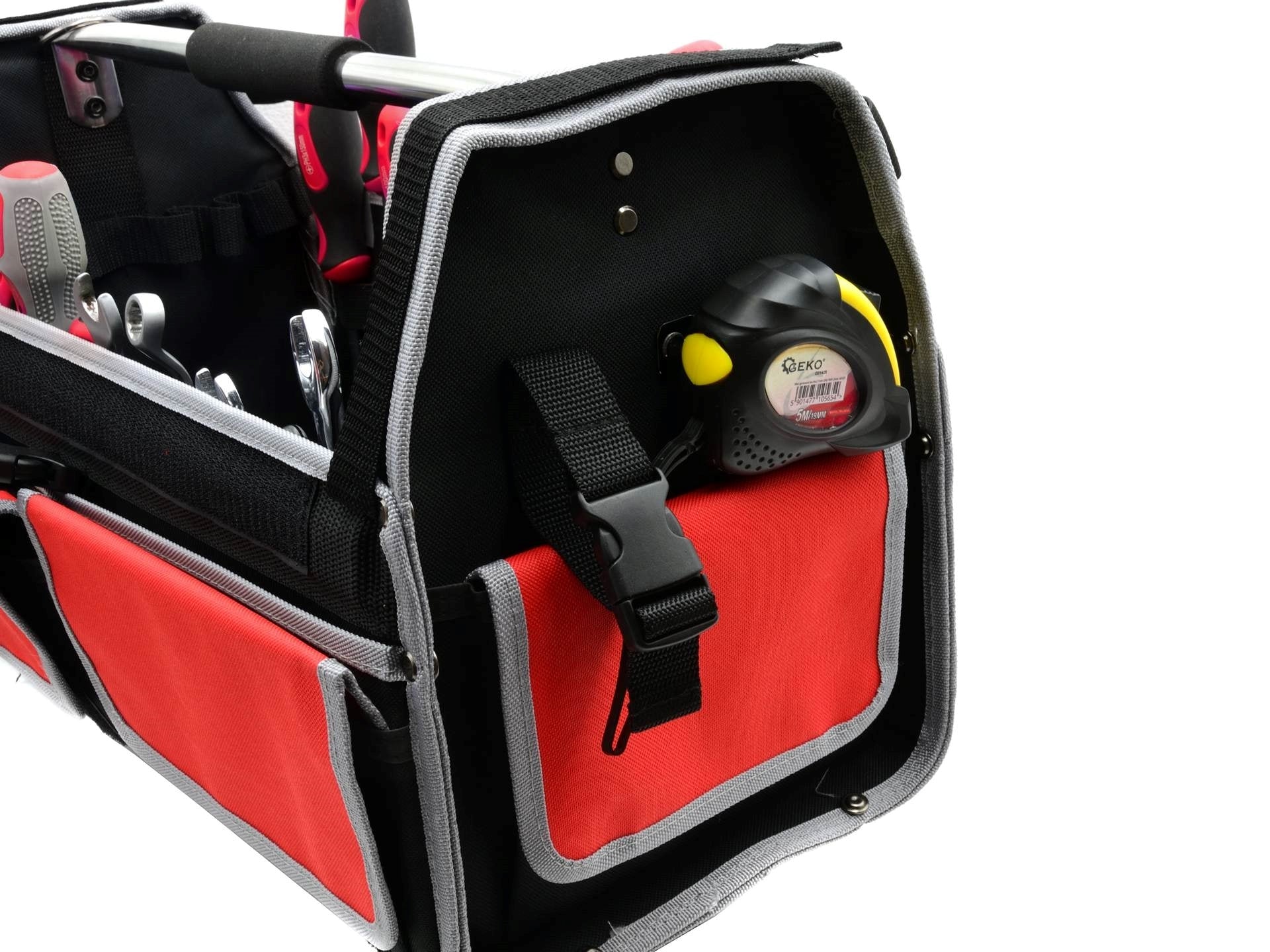 - Spațiu mare pentru unelte, 47 de buzunare în sac și suporturi de scule, chei și șurubelnițe