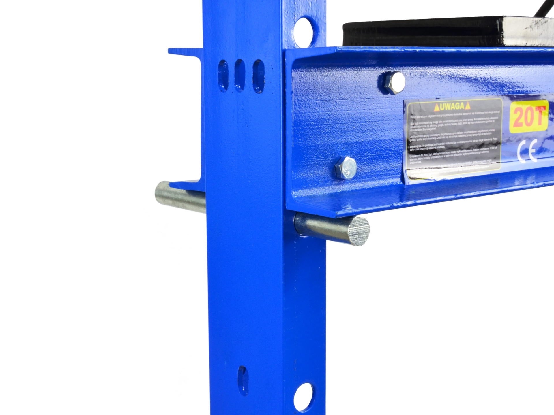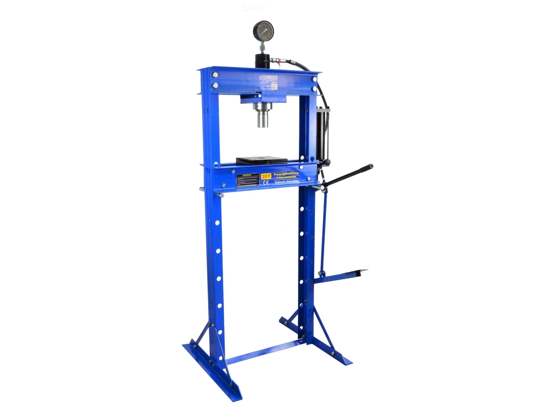 Presă hidraulică de 20 tone. Util pentru reparații, servicii sau ateliere industriale, precum și în agricultură. Rama care susține întreaga structură asigură rezistența la deteriorări mecanice.