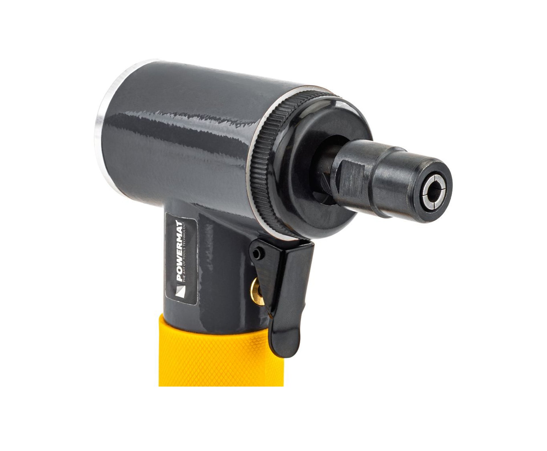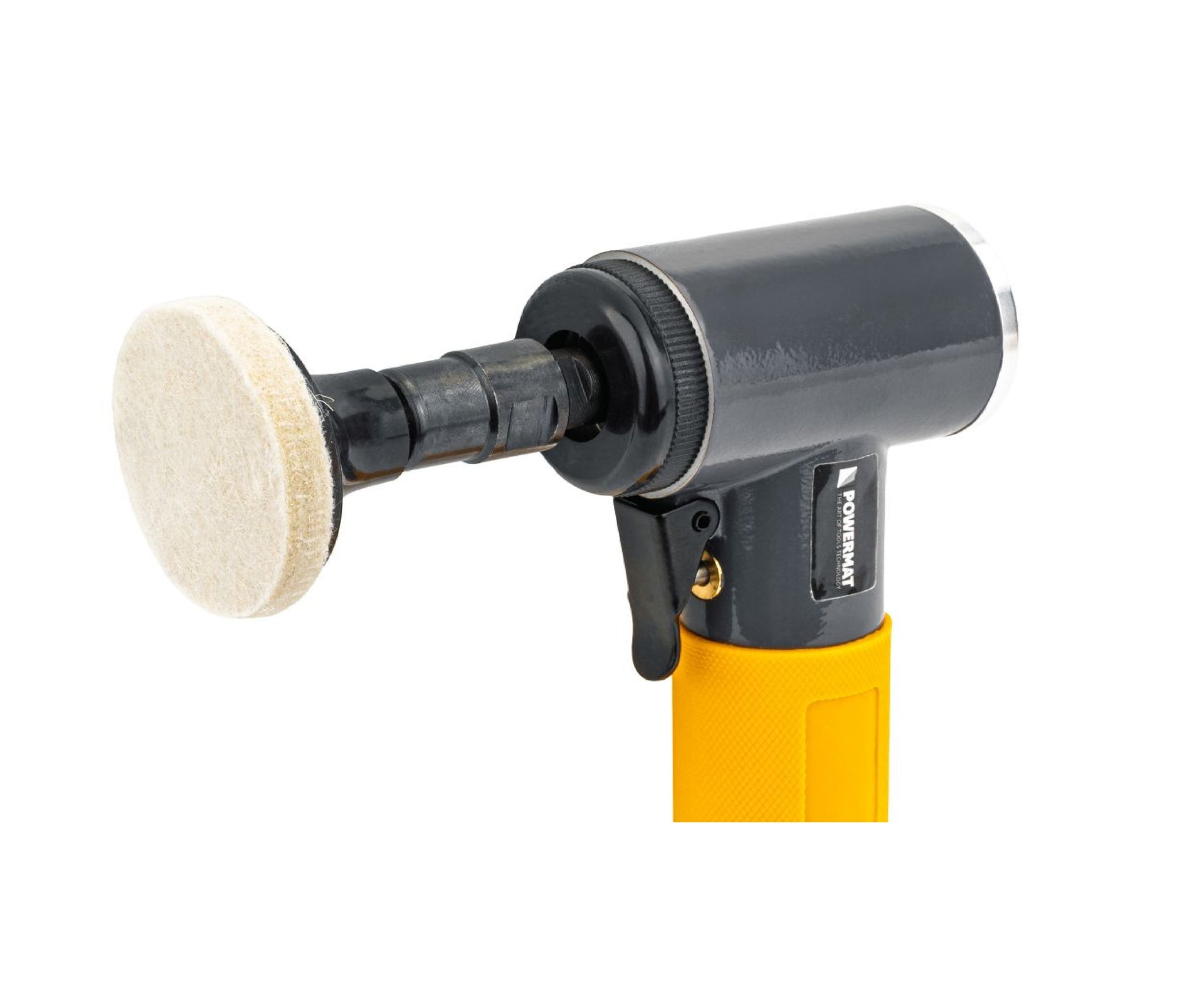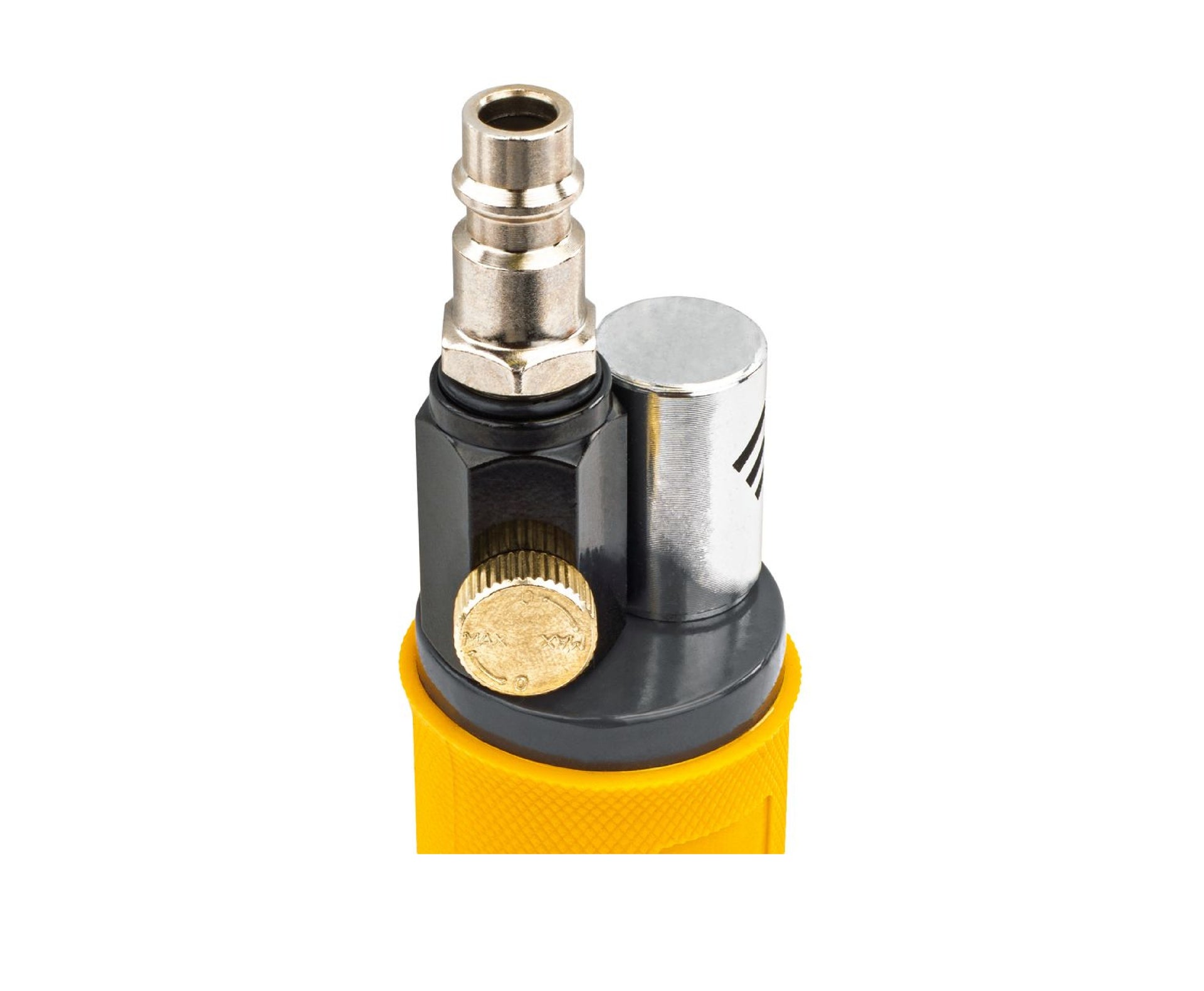Masina de rasnit este echipata cu un regulator de aer incorporat care permite reglarea precisa a vitezei in functie de tipul de material procesat.