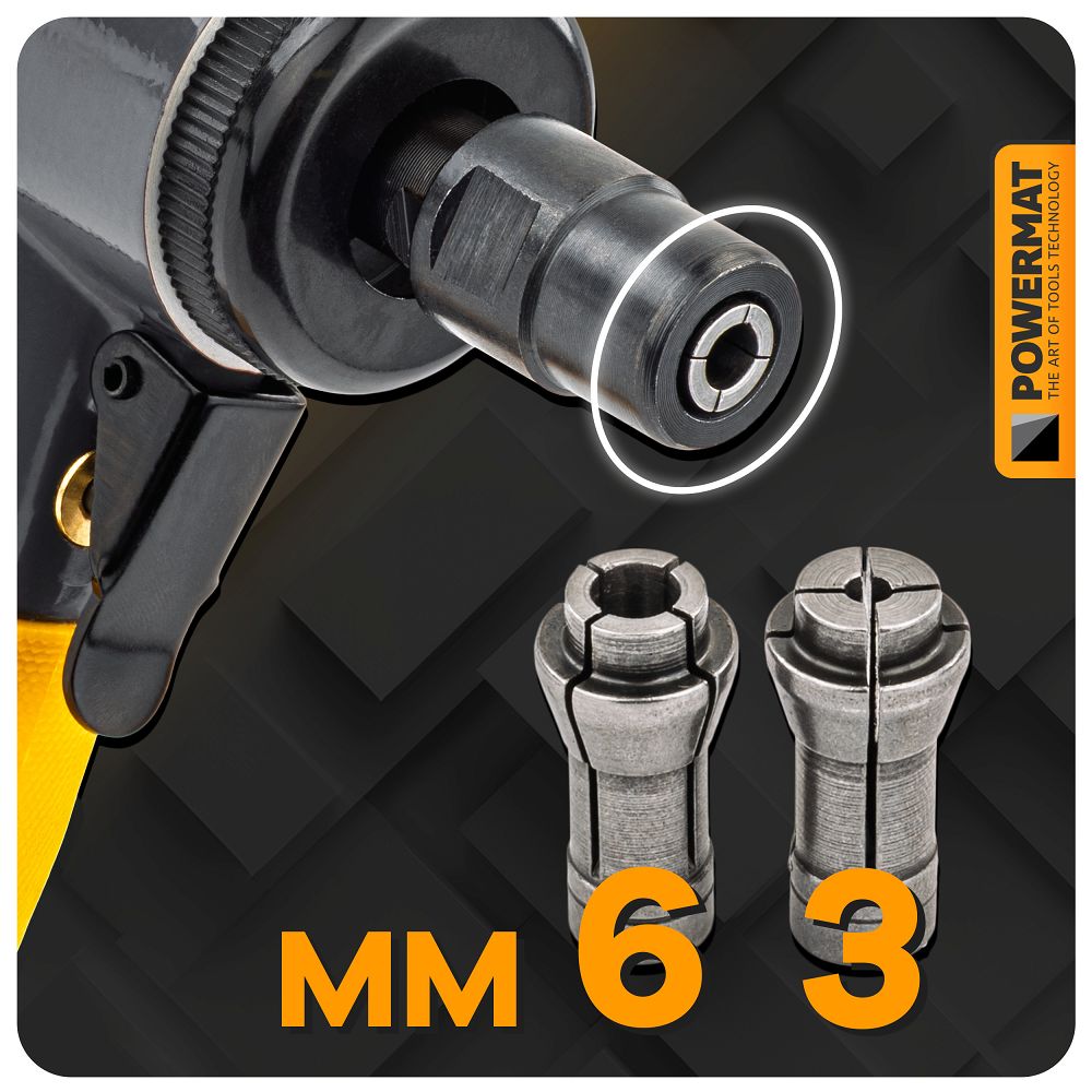 Polizorul are clesti cu diametre de 3 mm si 6 mm , ceea ce permite instalarea unei game largi de varfuri de slefuire si lustruire.