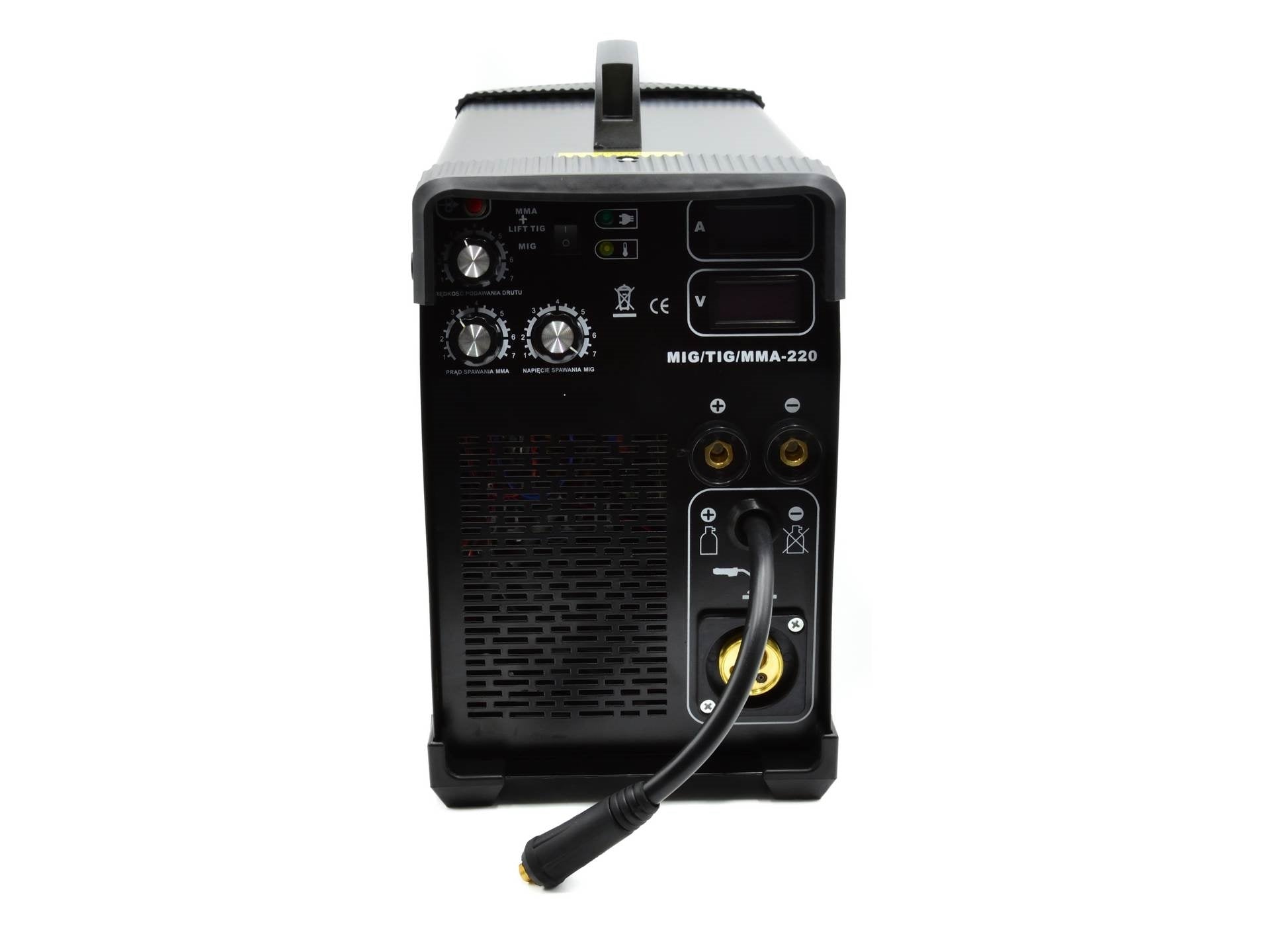Aparatul de sudura 3 in 1 va permite sa sudati cu cele mai populare metode de sudare precum MIG, MMA si TIG. Proiectat pentru sudarea otelurilor cu continut scazut de carbon, slab aliate si aliate. Acest dispozitiv este utilizat in lucrari de tabla sau in atelier.