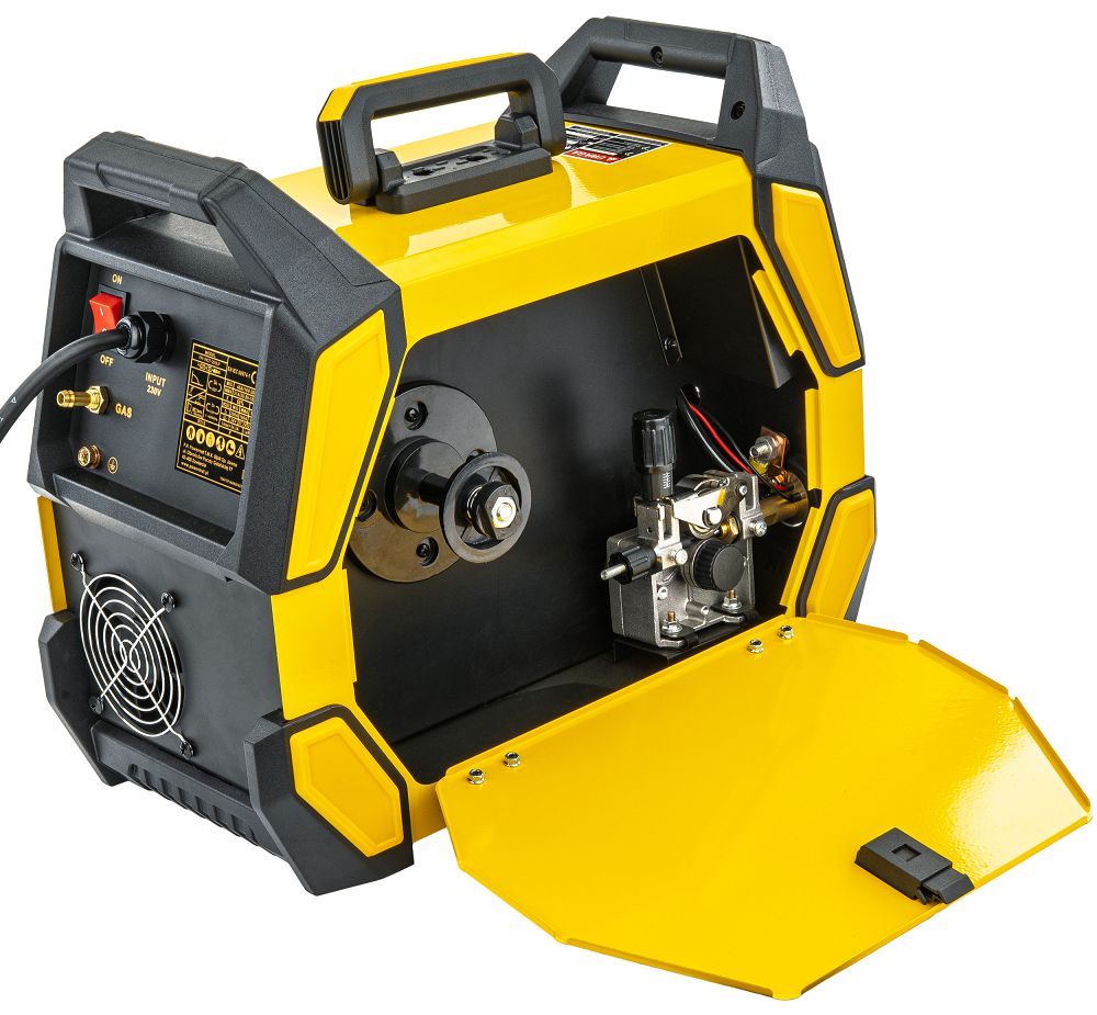 Acest model este un aparat de sudura bazat pe tranzistoare IGBT eficiente. Este echipat cu un afisaj LCD clar care arata curentul de sudura actual, care este setat cu ajutorul unor butoane, dintre care unul serveste si ca buton de selectare a functiilor. Aparatul MIG este echipat cu un ventilator de racire, componente electronice si alte componente, precum si un senzor termic pentru a proteja dispozitivul de supraincalzire.