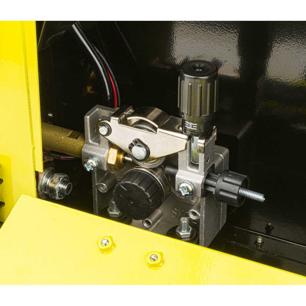 Aparatul semi-automat prin comutarea tipului de material de sudat, ofera presetarile corespunzatoare, care vor regla automat parametrii de sudare cu grosimea firului selectat. Alimentatorul cu 2 role permite alimentarea precisa a firului de sudura, prevenind alunecarea acestuia. Constructia usoara cu un maner stabil din aluminiu permite miscarea uaoara a intregului dispozitiv.