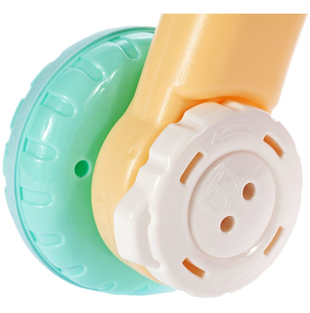 * Daca doriti ca, copilul sa se joace intr-un singur loc, puteti bloca rotile din spate si puteti turna apa intr-un recipient special din spatele produsului pentru a-l face stabil.